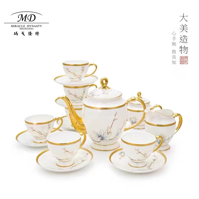 玛戈隆特 15头茶咖具进博玉兰-黄金珐琅彩