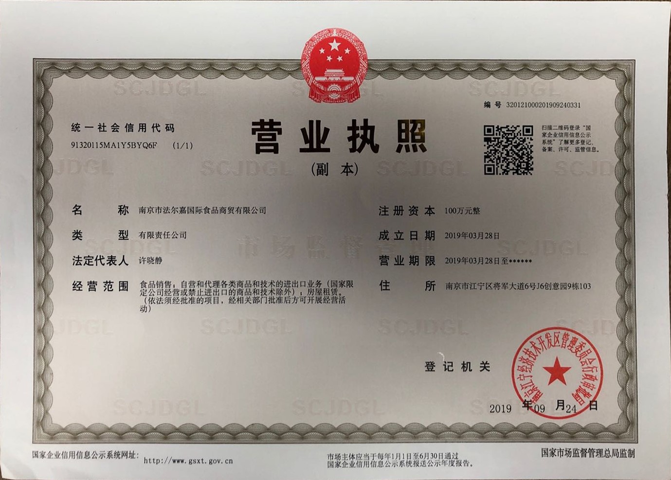 - 经营范围:食品销售;自营和代理各类商品和技术的进出口业务(国家限定公司经营或禁止进出口的商品和技术除外),房屋租赁(依法须经批准后方可开展经营活动)
