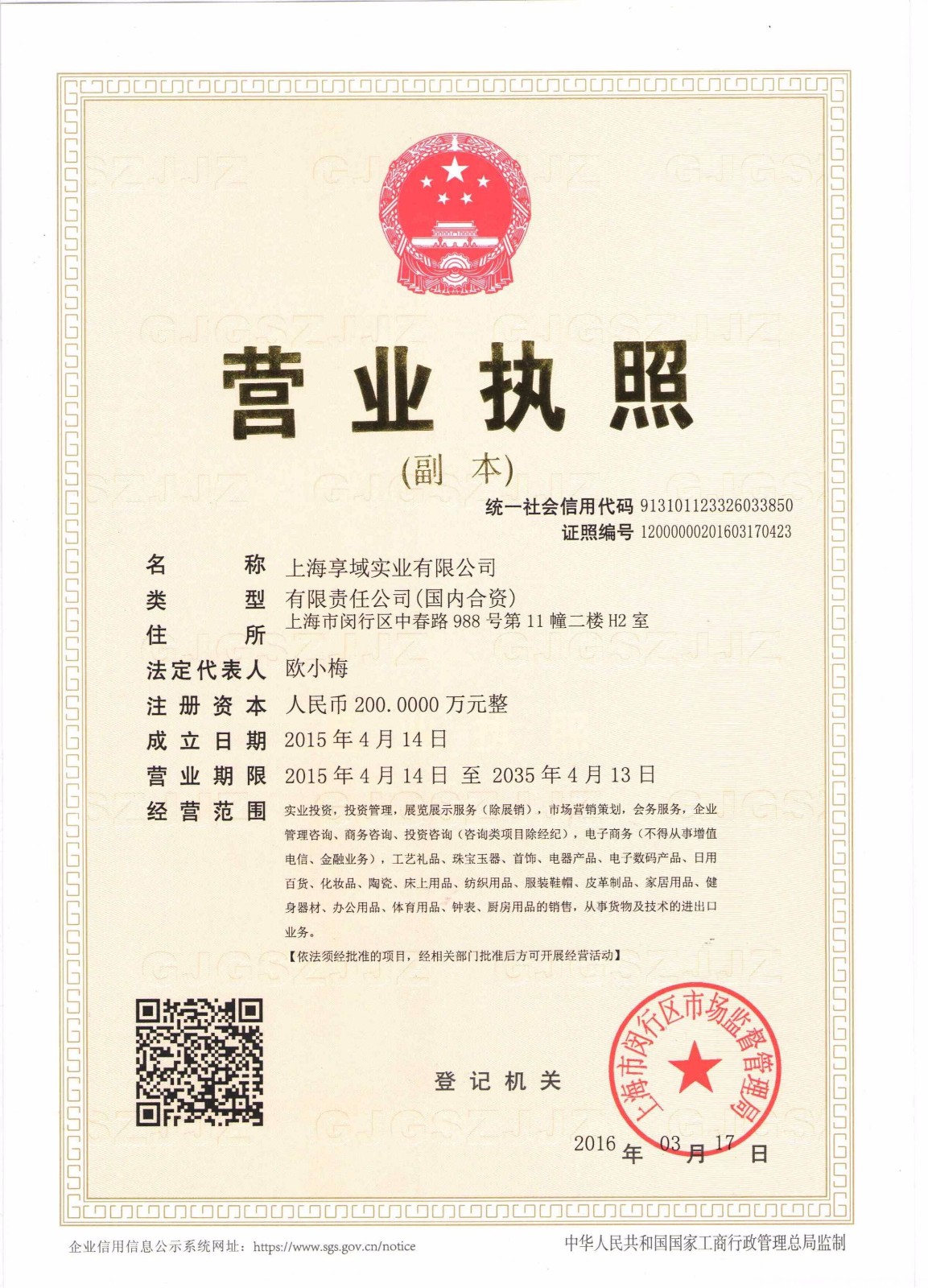 营业执照: