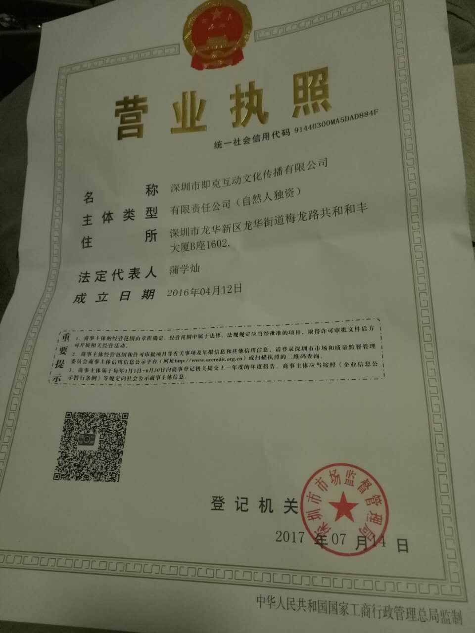 营业执照: