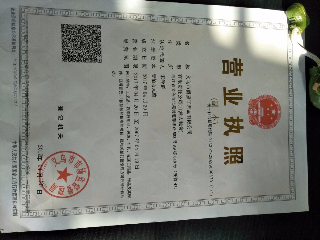 网上销售:工艺品、汽车日用品、钟表、灯具、家居日用品、饰品及其配件、日用百货。(依法须经批准的项目,经相关部门批准后方可开展经营活动)