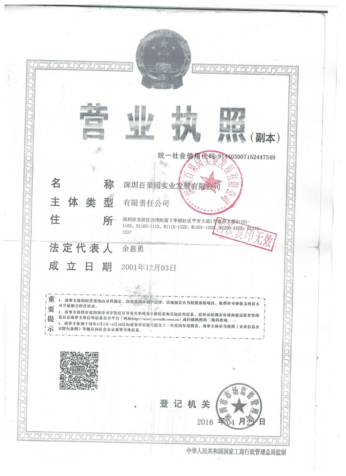 - 经营范围:信息咨询服务(不含限制项目);初级农产品、日用百货的购销;投资兴办实业(具体项目另行申报);企业管理咨询与策划(不含限制项目);房地产经纪;国内贸易;水果雕刻;水果销售;信息技术咨询、技术服务。(企业经营涉及前置性行政许可的,须取得前置性行政许可文件后方可经营)。市场营销策划;电子商务;广告传播,广告策划,进出口代理;自动柜员机出租;国内货物运输代理;货物搬运装卸服务; 包装材料、纸制品、木制品、金属制品、塑料制品的设计、销售;设计、制作招牌、灯箱。在网上销售农产品、食品、农副食品、调味品、粮油及制品、米、面、肉、熟食;互联网信息服务、数据处理;自动售货机销售(含果汁、果切、水果);经营电子商务。^果汁制售;果汁、干果、预包装食品(不含复热预包装食品)、乳制品(不含婴幼儿配方乳粉)的销售;仓储服务;水果销售及加工;餐饮服务;职业技能教育;印刷制品(含书)的销售;食品分装。
