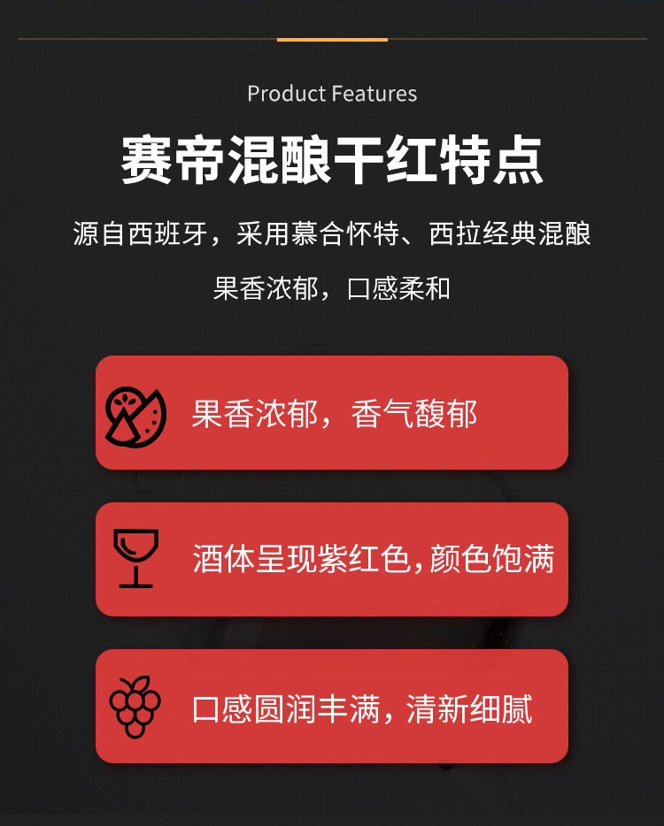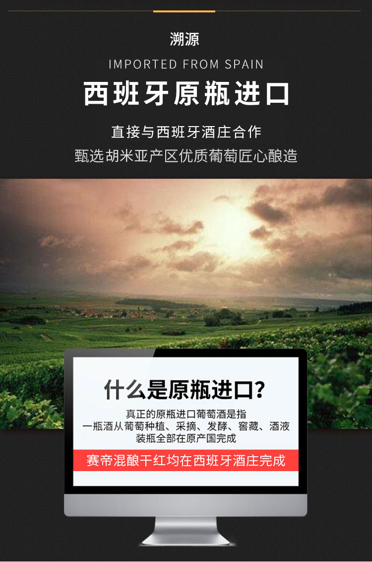 1. 西班牙极具特色混酿:西拉,慕合怀特酿造,勃艮第瓶型