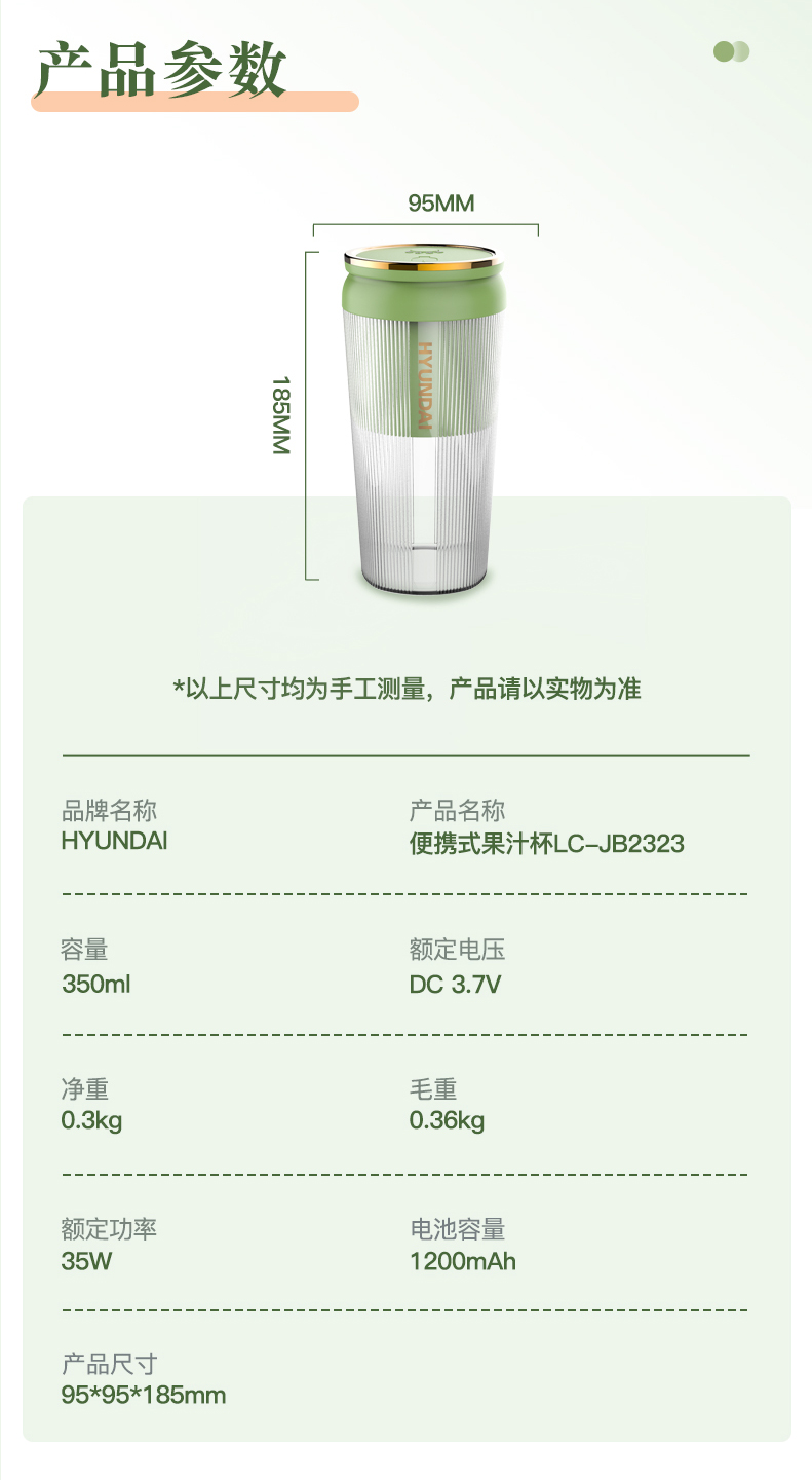 HYUNDAI(韩国现代)便携式果汁杯LC-JB2323