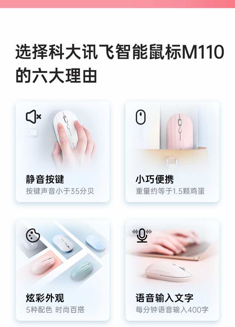 智能语音无线鼠标M110 黑色 白色 蓝色 粉色