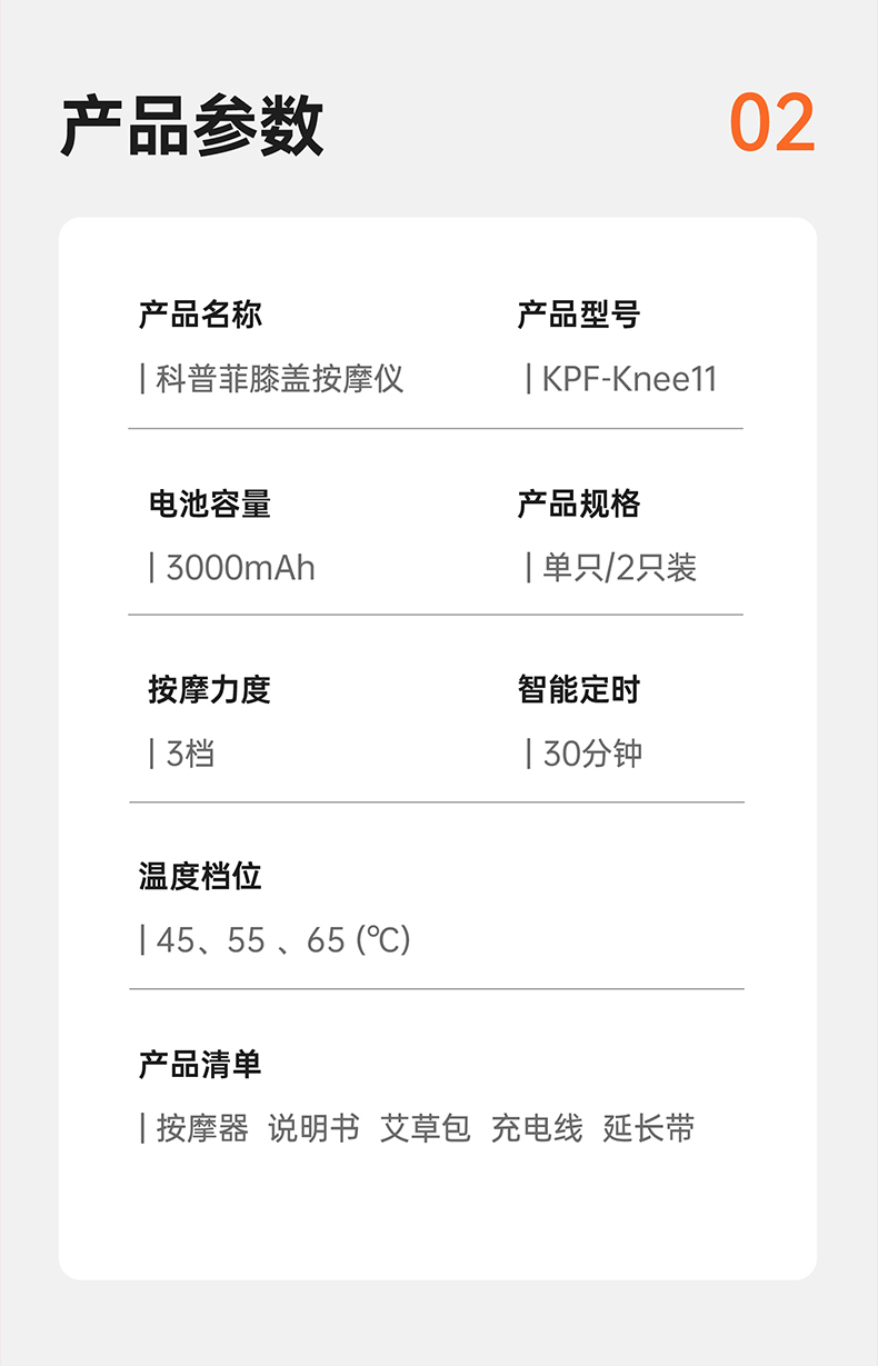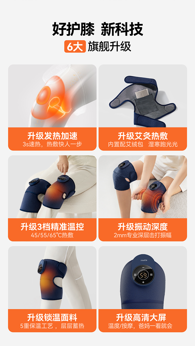 1、肩部,膝盖,手肘都可用(一机三用)有配1根延长带 2、触屏设计,屏幕有带数显(温度、震动模式显示) 3、发热片是阻燃材质,用打火机点火,都无法点燃 4、电池容量3000毫安,采用品牌电池,电池容量更足,安全系数更高,使用寿命更长。 5、3个按摩模式,3档温度调节:45℃/55℃/65℃ 6、NTC温控,无烫伤风险。 7、主机壳料是采用ABC防火材质,使用更安全,无安全隐患