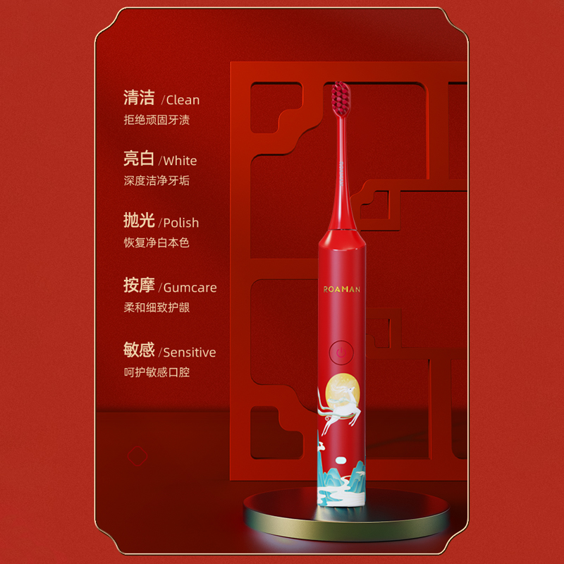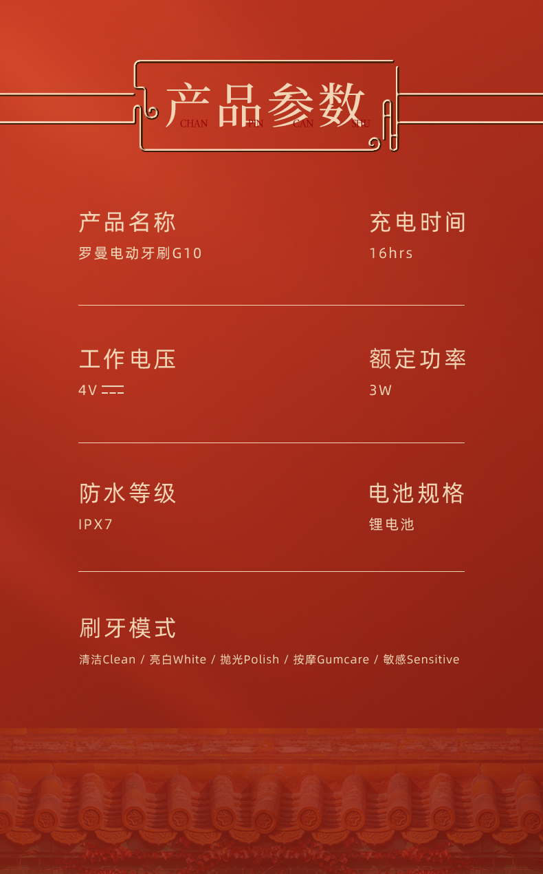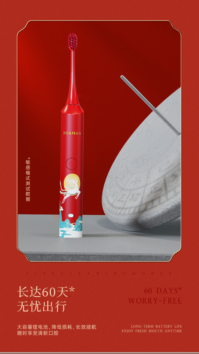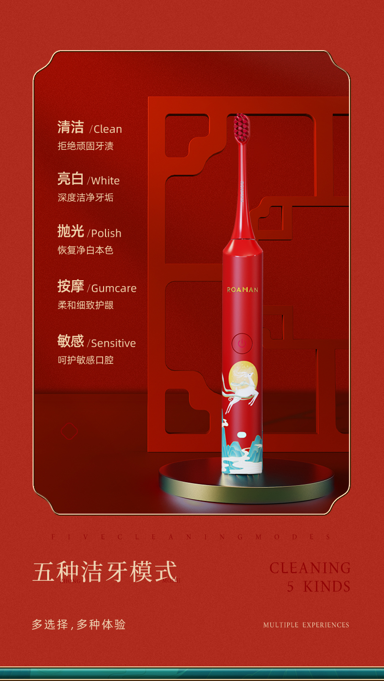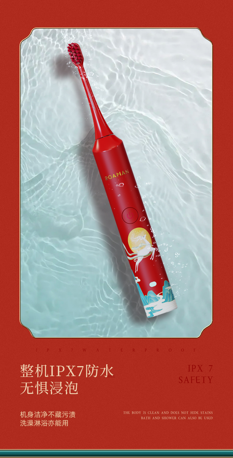 5种刷牙模式切换,随心所欲; 智能换挡震动提醒, 2分钟刷牙习惯养成; 机身IPX7防水等级;清洗淋浴安全无忧; 超大电池容量 早晚各两分钟,续航60天;