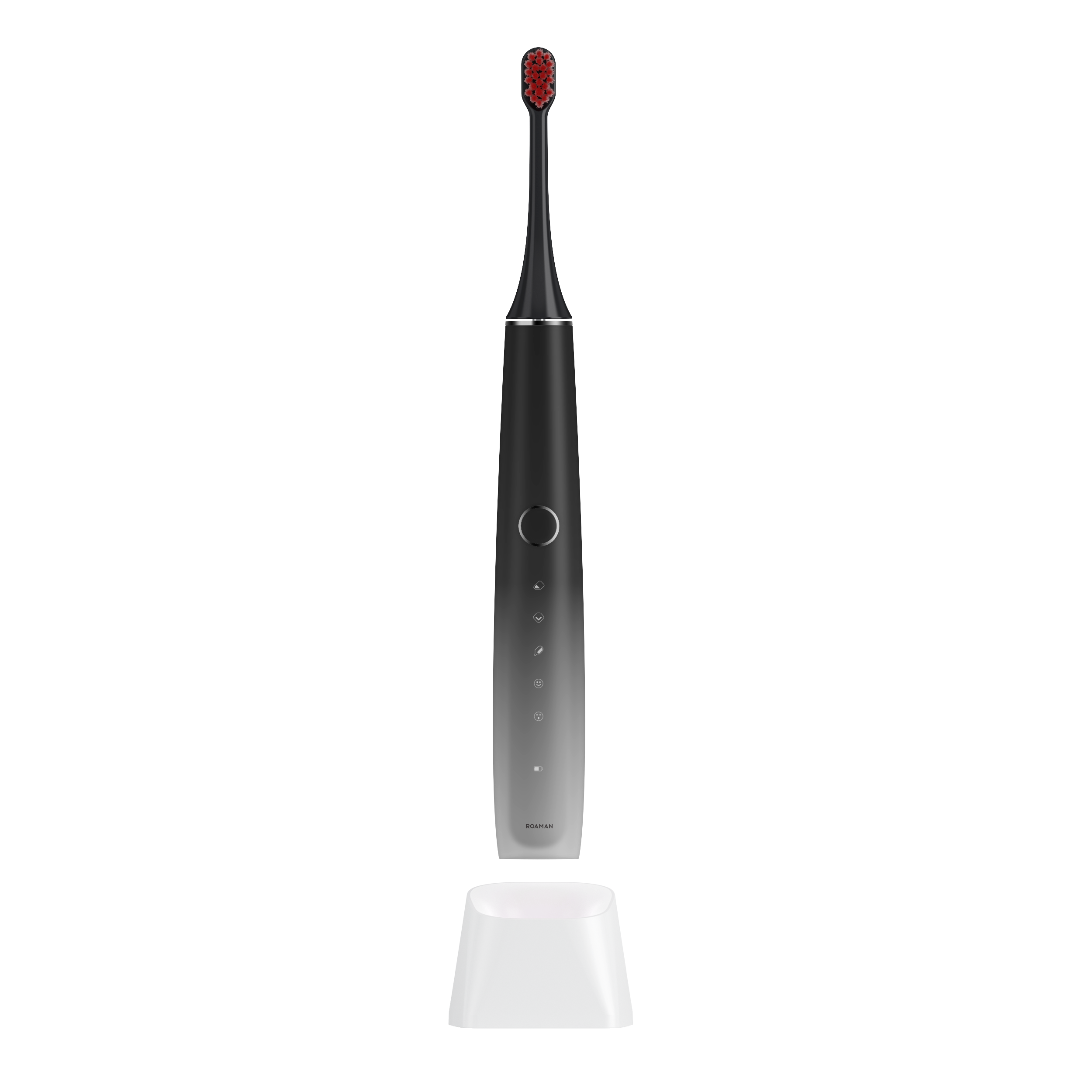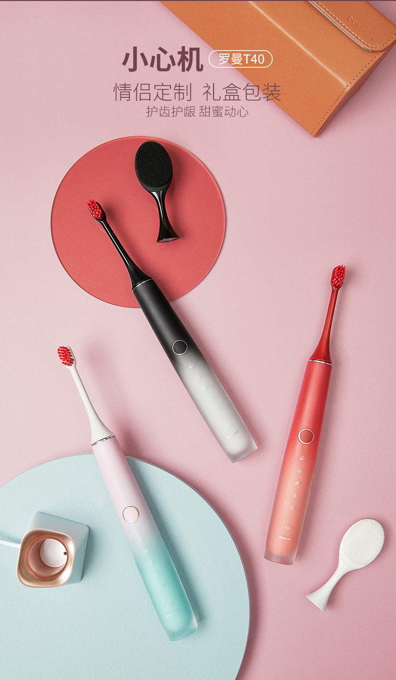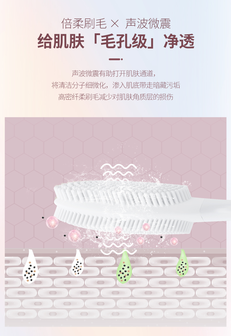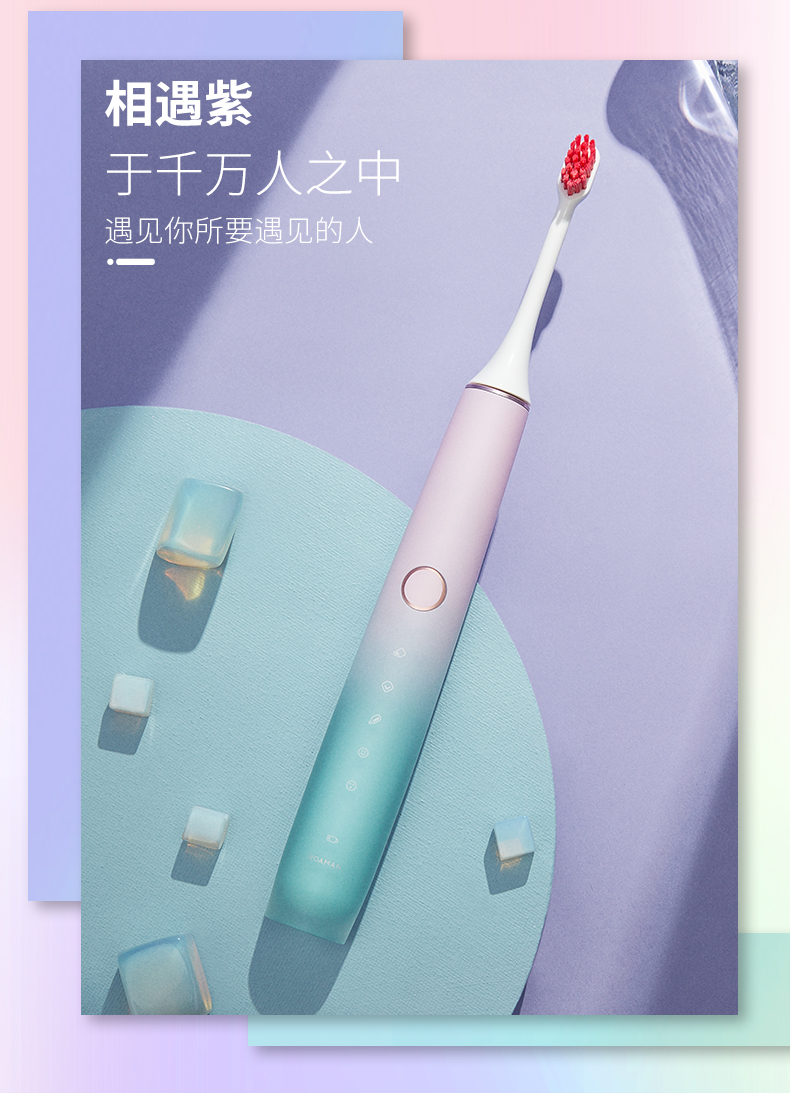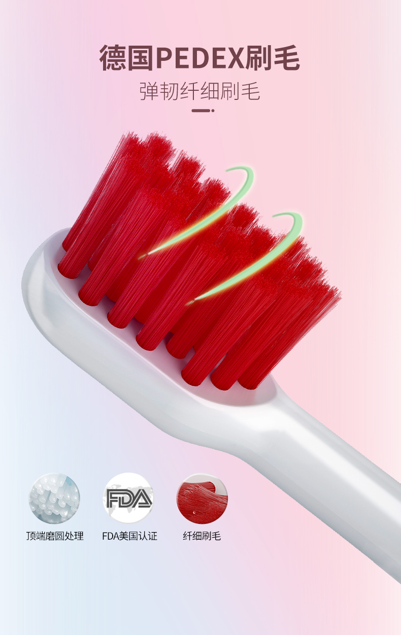 冰雾渐变机身,潮酷吸睛外观, 刷牙洗脸二合一 德国PEDEX心型变色刷毛,一百天提醒更换 国内领先磁悬浮马达,振动频率最高可达3700次/分钟 五种刷牙洁面模式:清洁/亮白/敏感/洁面/按摩 IPX7级防水,全身可水洗 3种刷头五种功能:美白、护龈、洁面一机到位 感应充电方式,充电一次续航60天