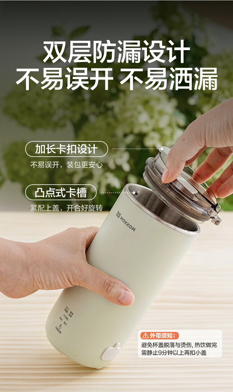 杯盖双重密封设计,不洒漏,不误开,小巧轻便,随身携带