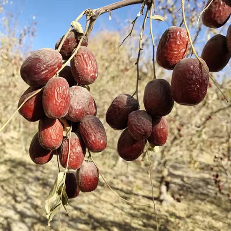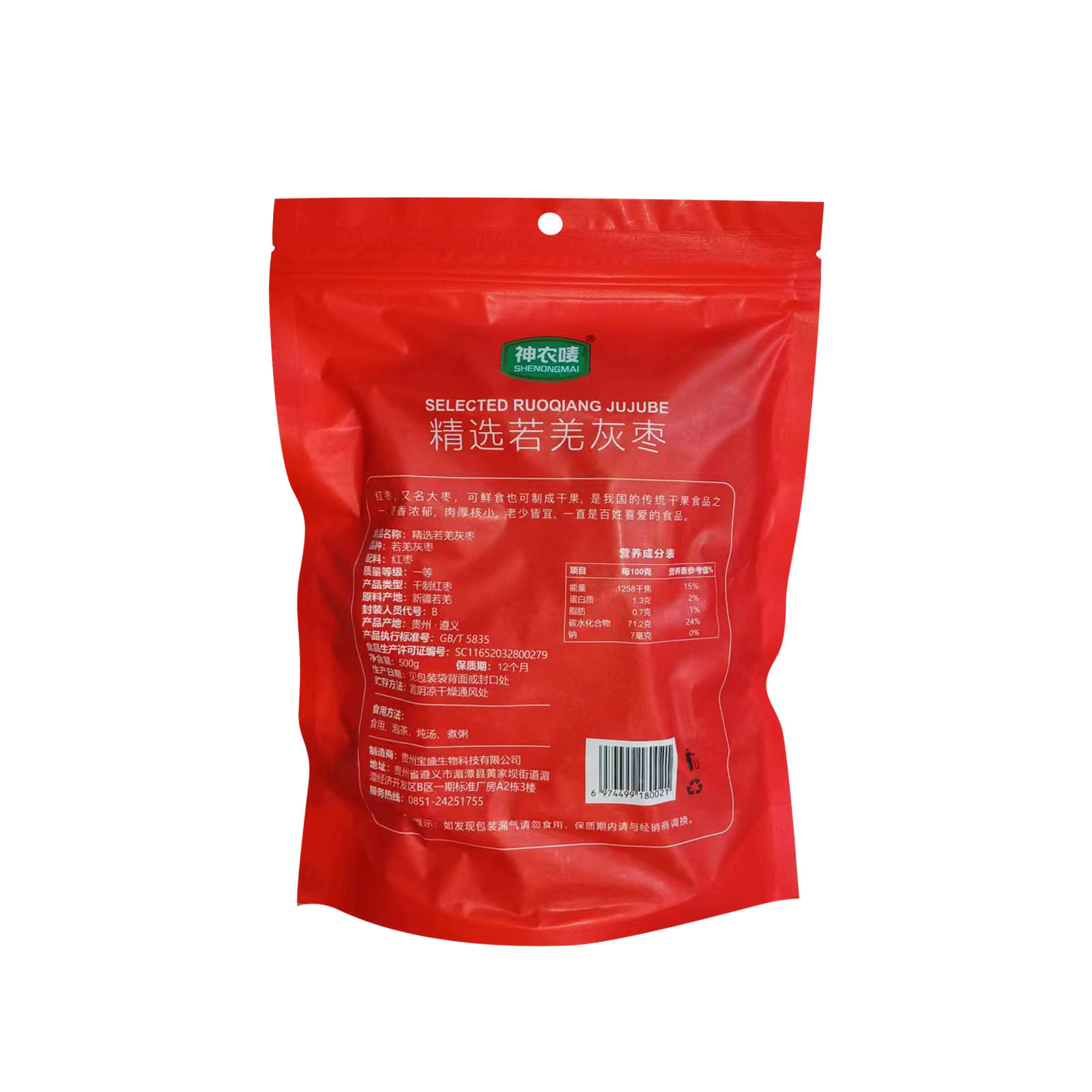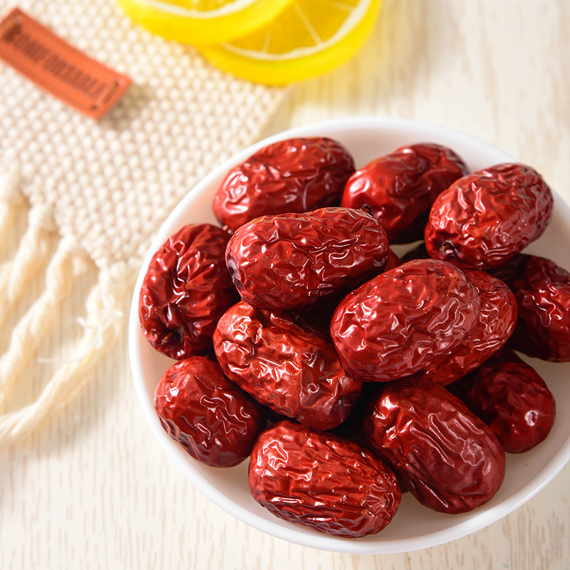 原料产地新疆若羌自然吊干红枣;果型饱满、肉厚核小、开袋即食零食,免洗红枣。