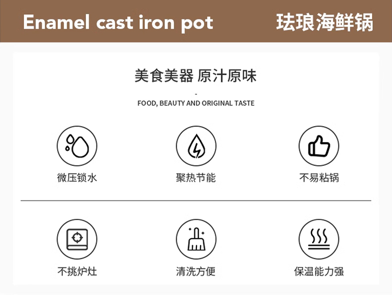 倾厨珐琅锅铸铁锅家用砂锅汤锅炖煮锅炖盅电磁炉焖焗锅海鲜锅