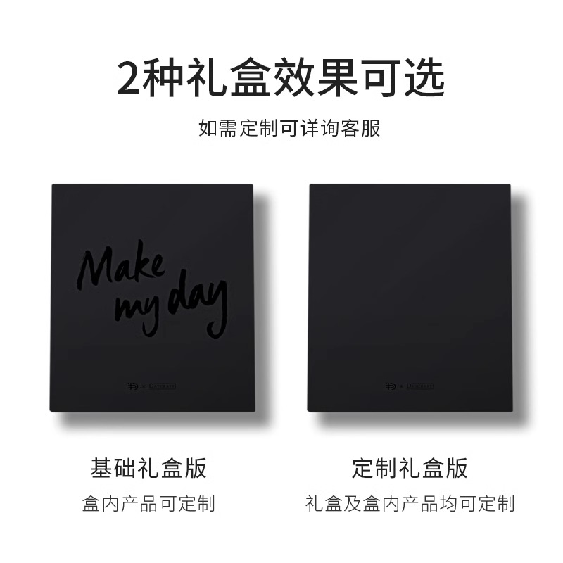 2.500数量可以定正品制礼盒,低于500数量,如需定制,可不干胶贴来展示。