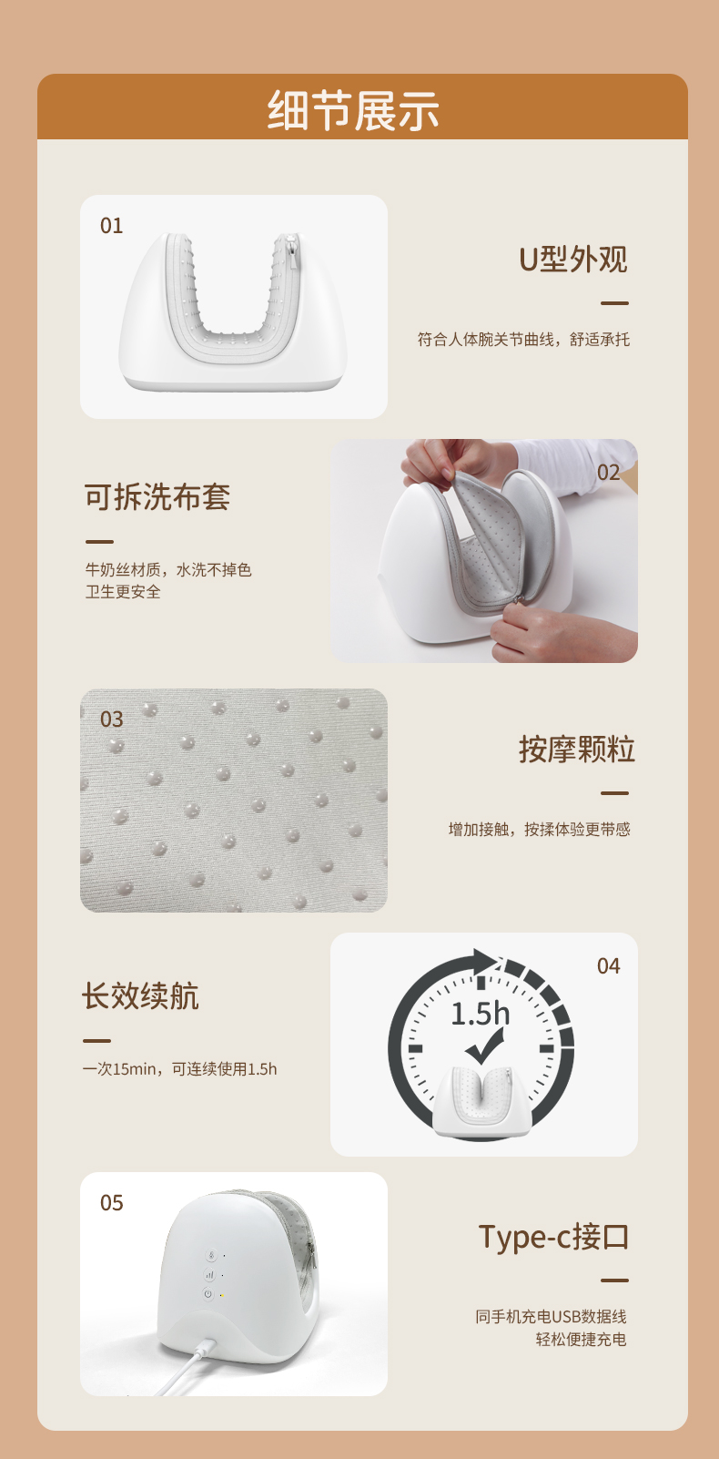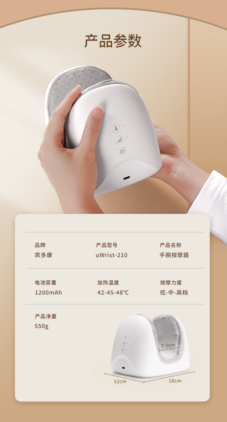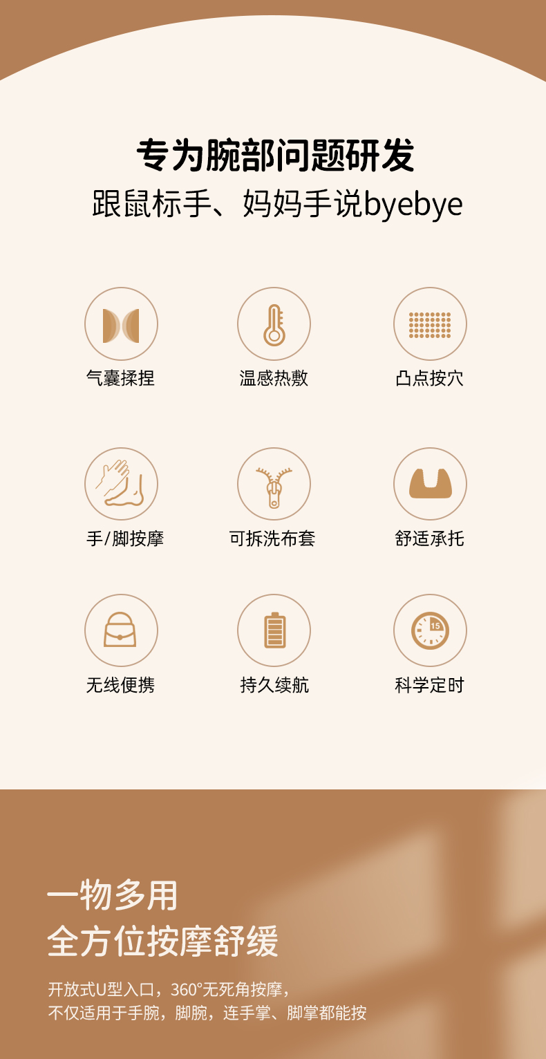 手腕按摩器电动手部按摩仪石墨烯热敷气囊揉捏按摩理疗仪