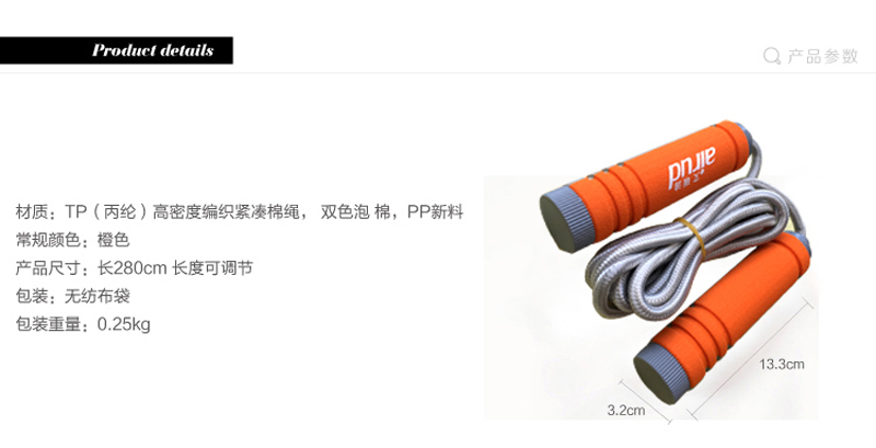 产品介绍:跳绳是一种典型轻便的休闲健身器械,可