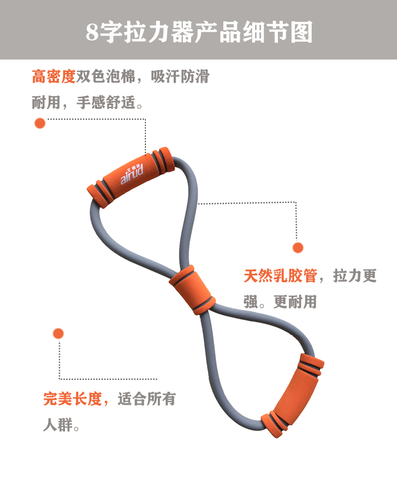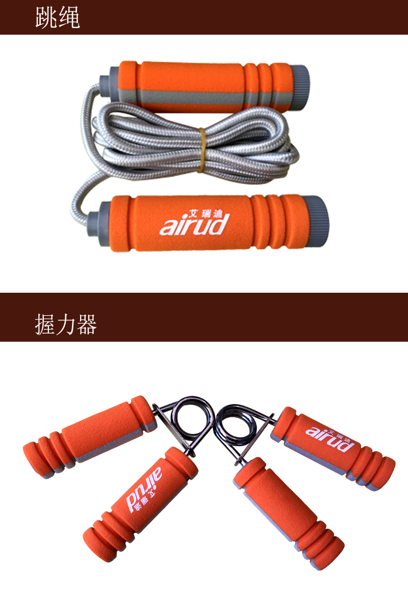 品说明:跳绳1条、握力器2个、哑铃2个、8子拉力器1条、脚蹬健腹器1个。