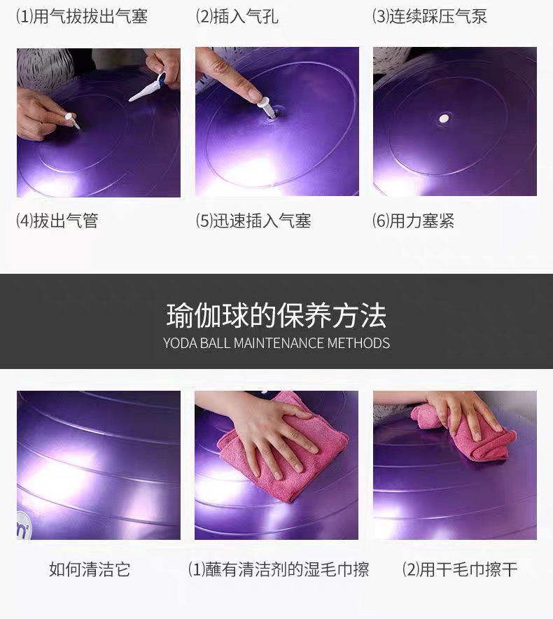产品用途:瑜伽球是为瑜伽练习者提供的辅助工具,帮助调整姿势,辅助身体达到一些动作,