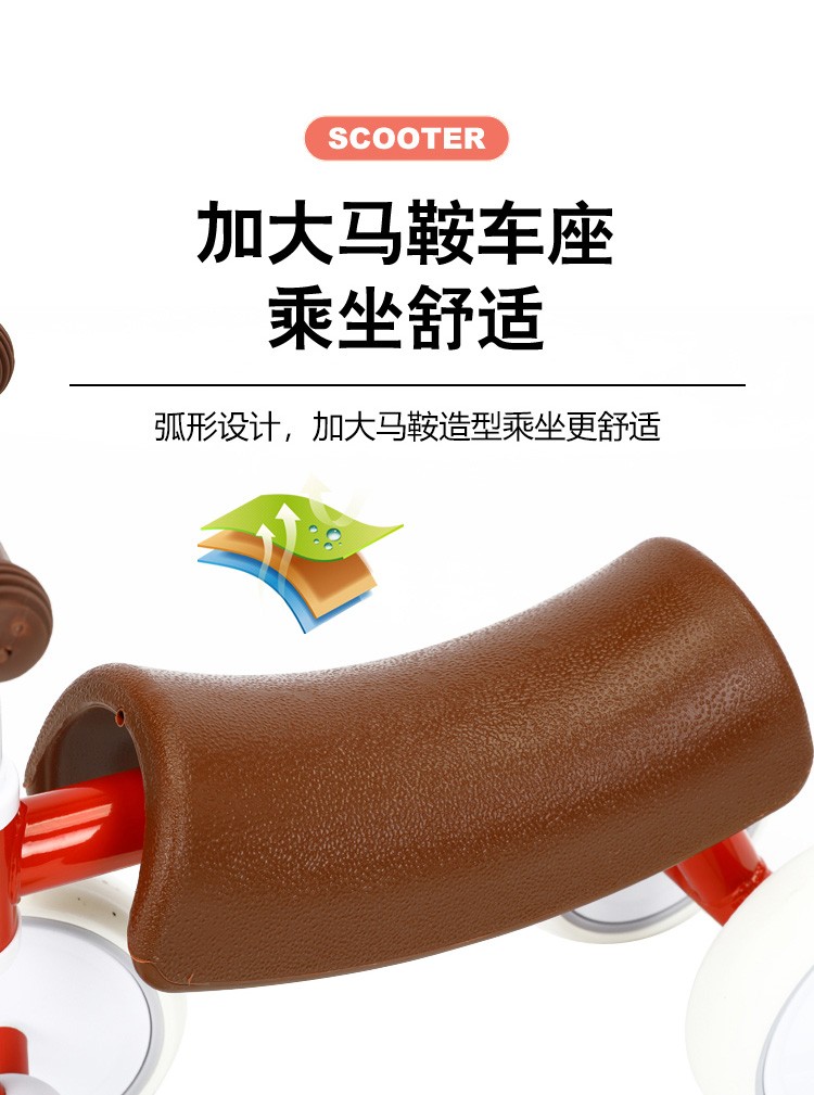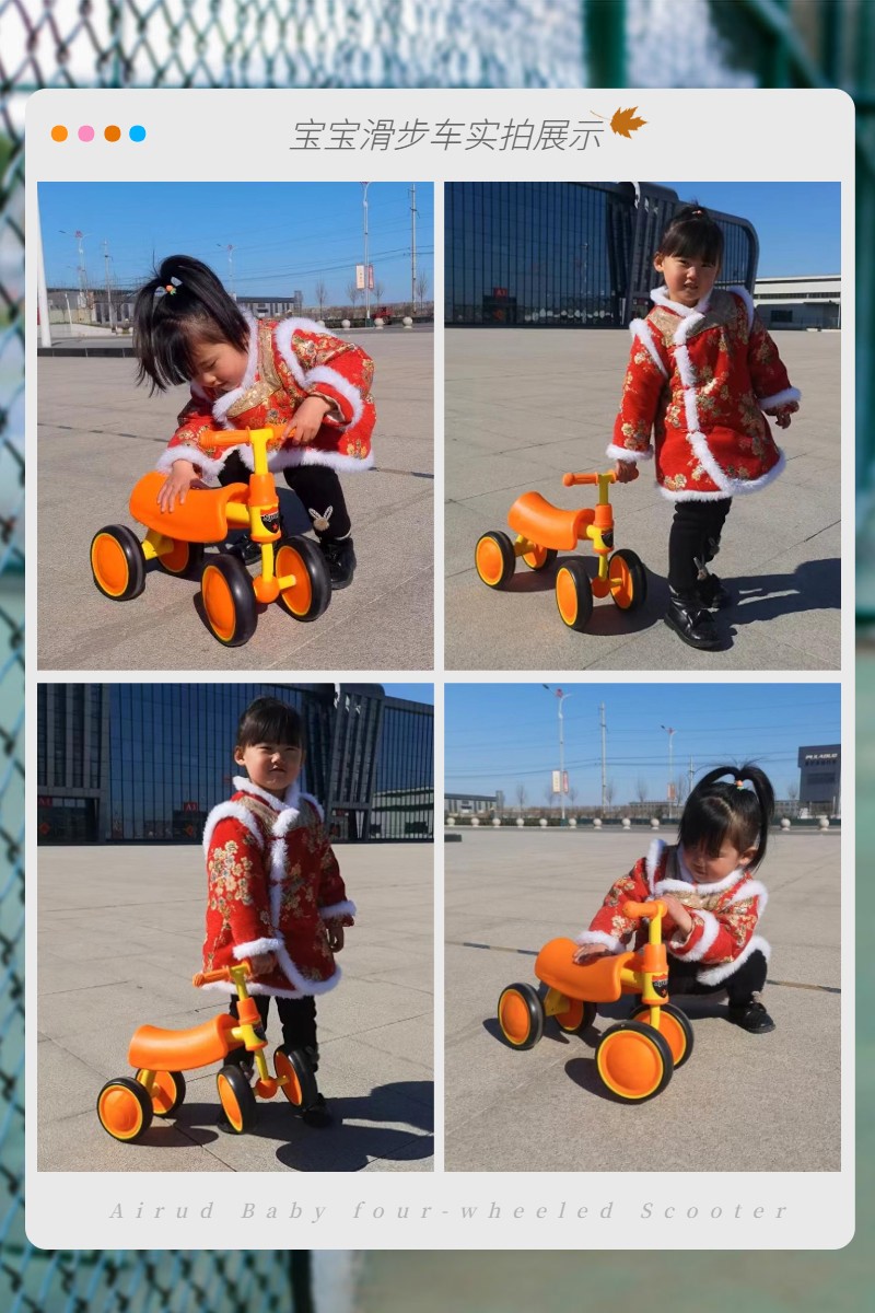 airud儿童滑板车学步坐着滑;限位转向宝宝更安全,使宝宝炫酷滑行。轮胎采用高弹EVA材质,防滑耐磨无惧颠簸,在家玩耍也不怕吵