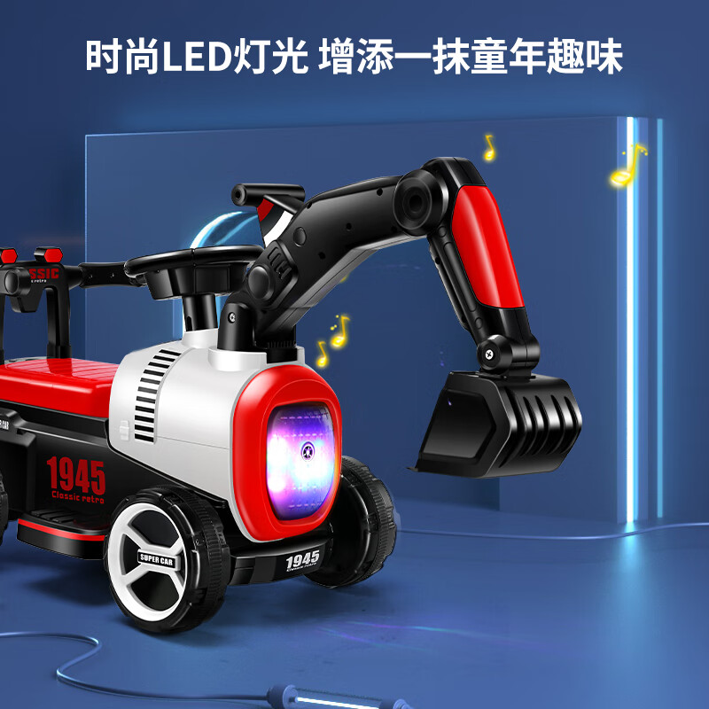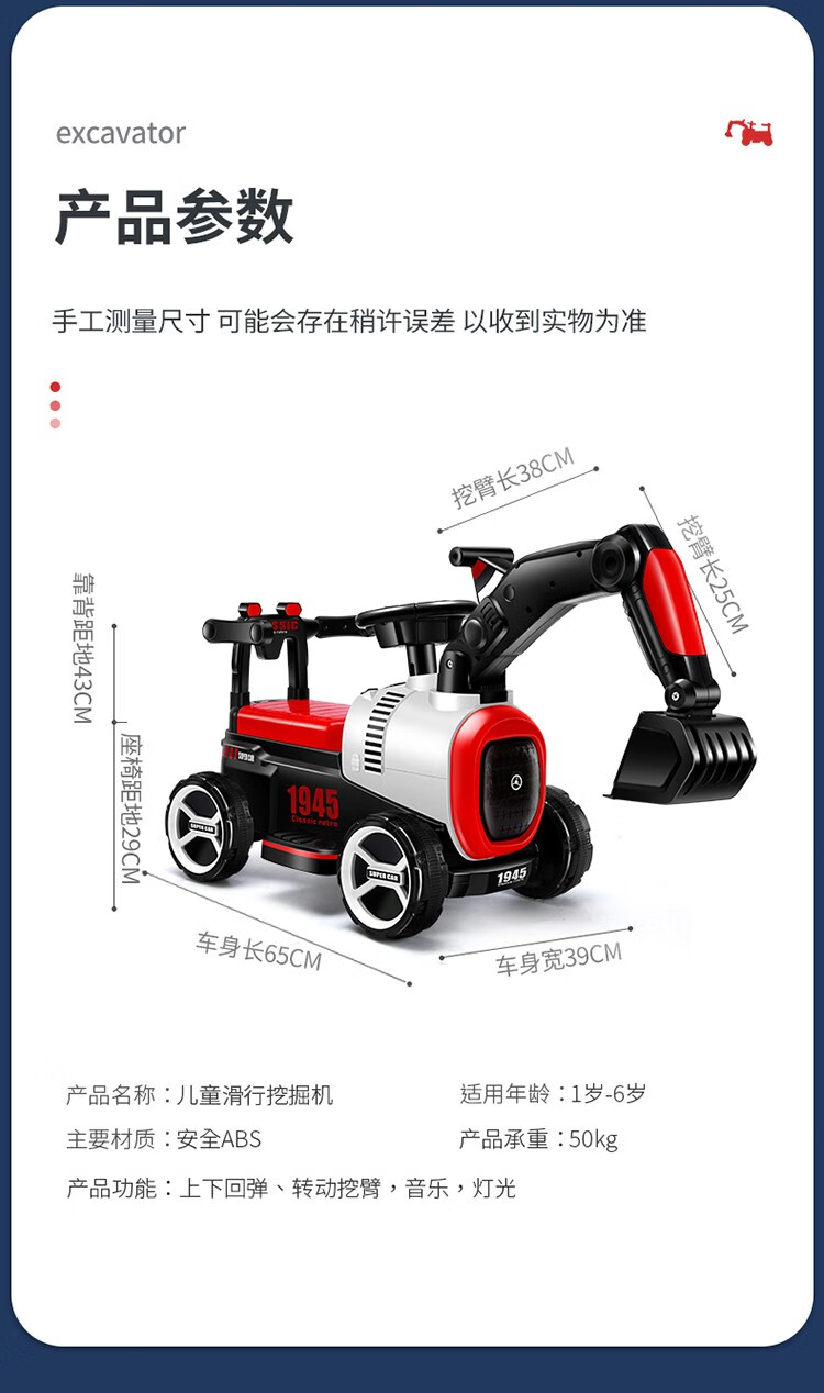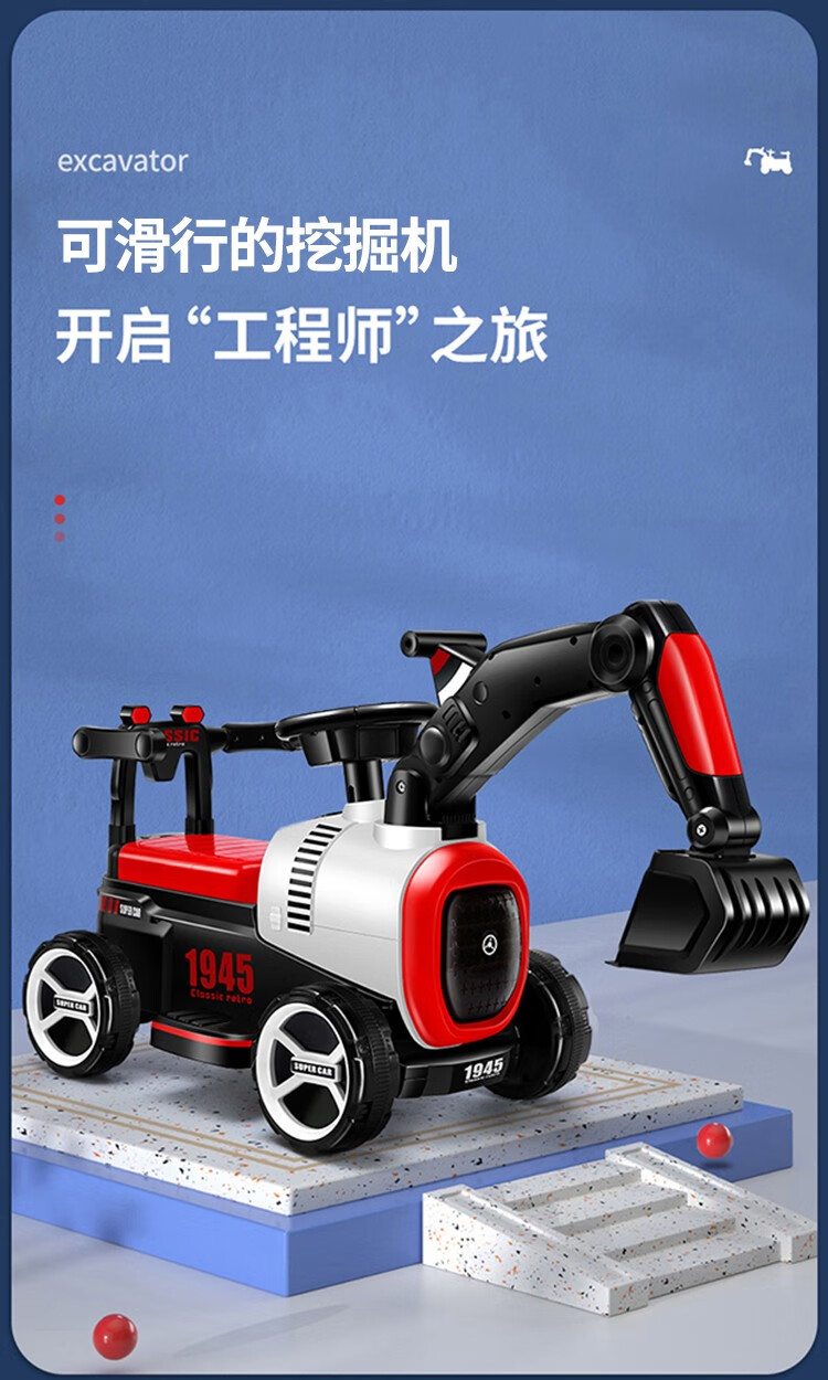 滑行款 手动挖臂 音乐灯光,四轮防侧翻,骑行玩耍稳稳的,低重心稳固结构宝宝玩耍更平稳防侧翻,安全舒适座椅靠背