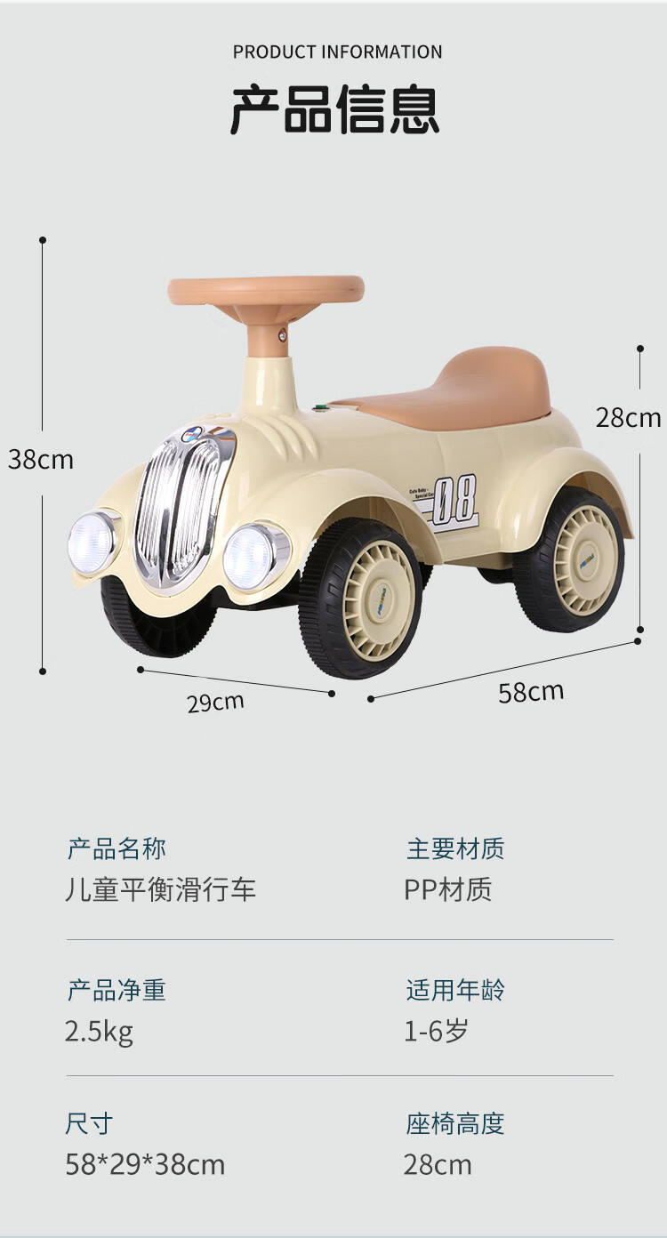 滑行款 音乐灯光,四轮防侧翻,骑行玩耍稳稳的,低重心稳固结构宝宝玩耍更平稳防侧翻