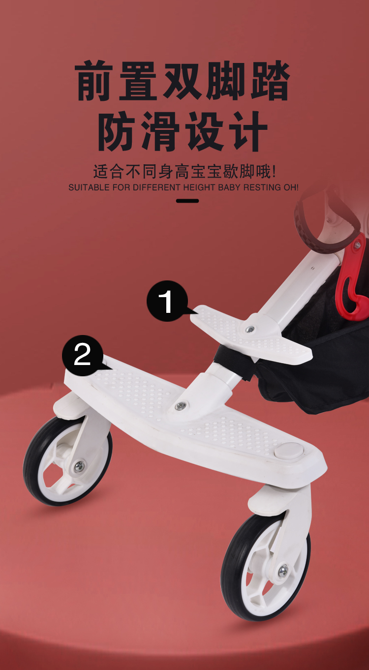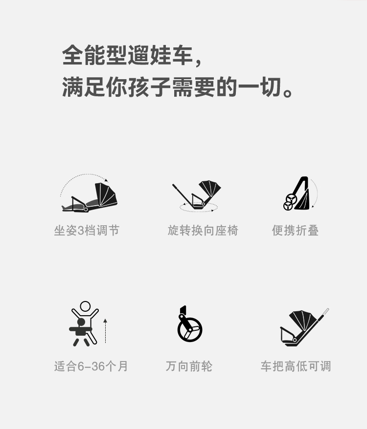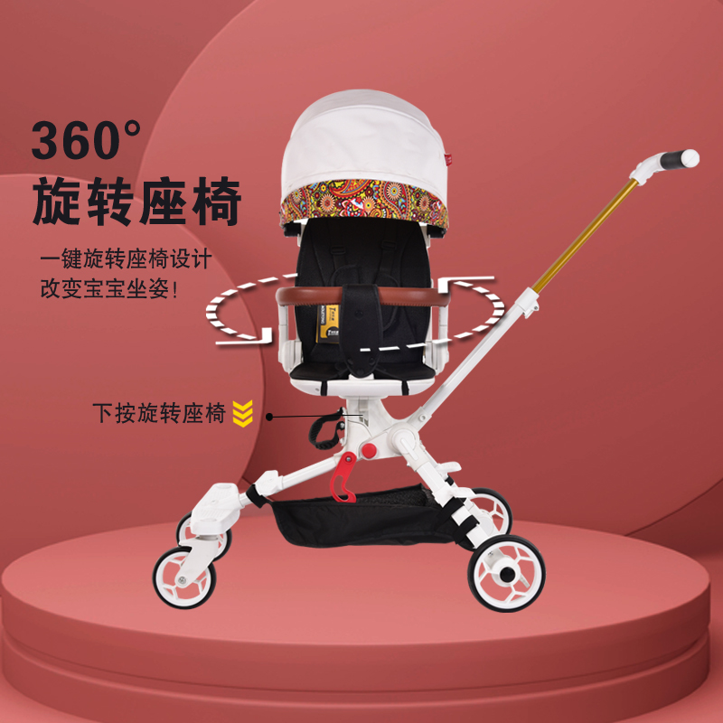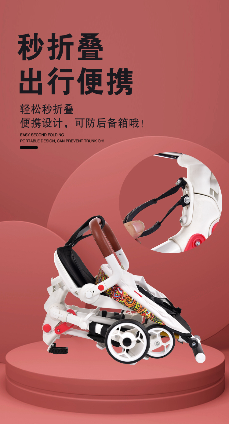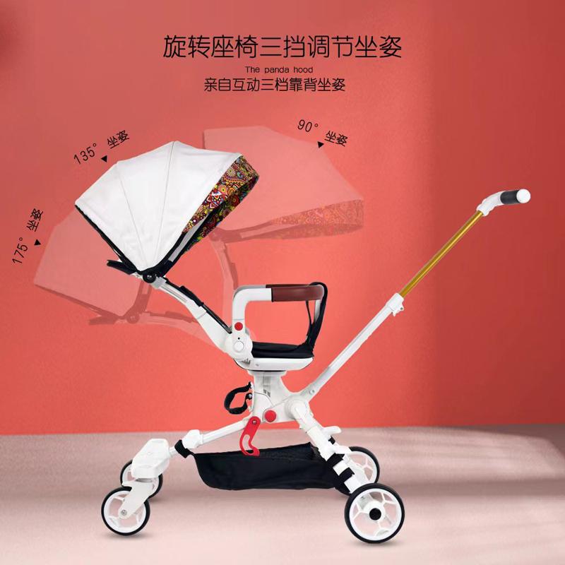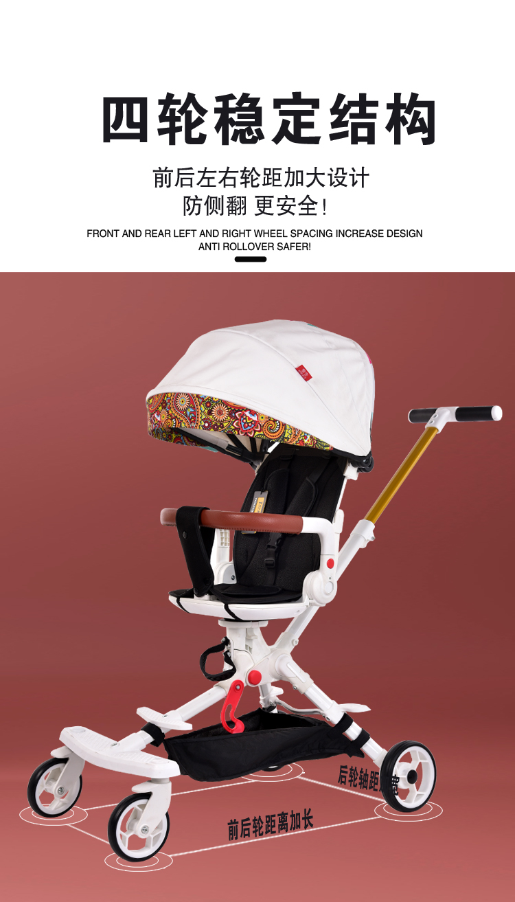 车身采用高碳钢车架,稳固安全;加宽发泡实心轮胎 ,减震防滑,适应各种路况路面;170度三个档位前后可躺宝宝坐累了也能休息一下适应宝宝不同年龄段使用;高景观座椅,骑乘舒适