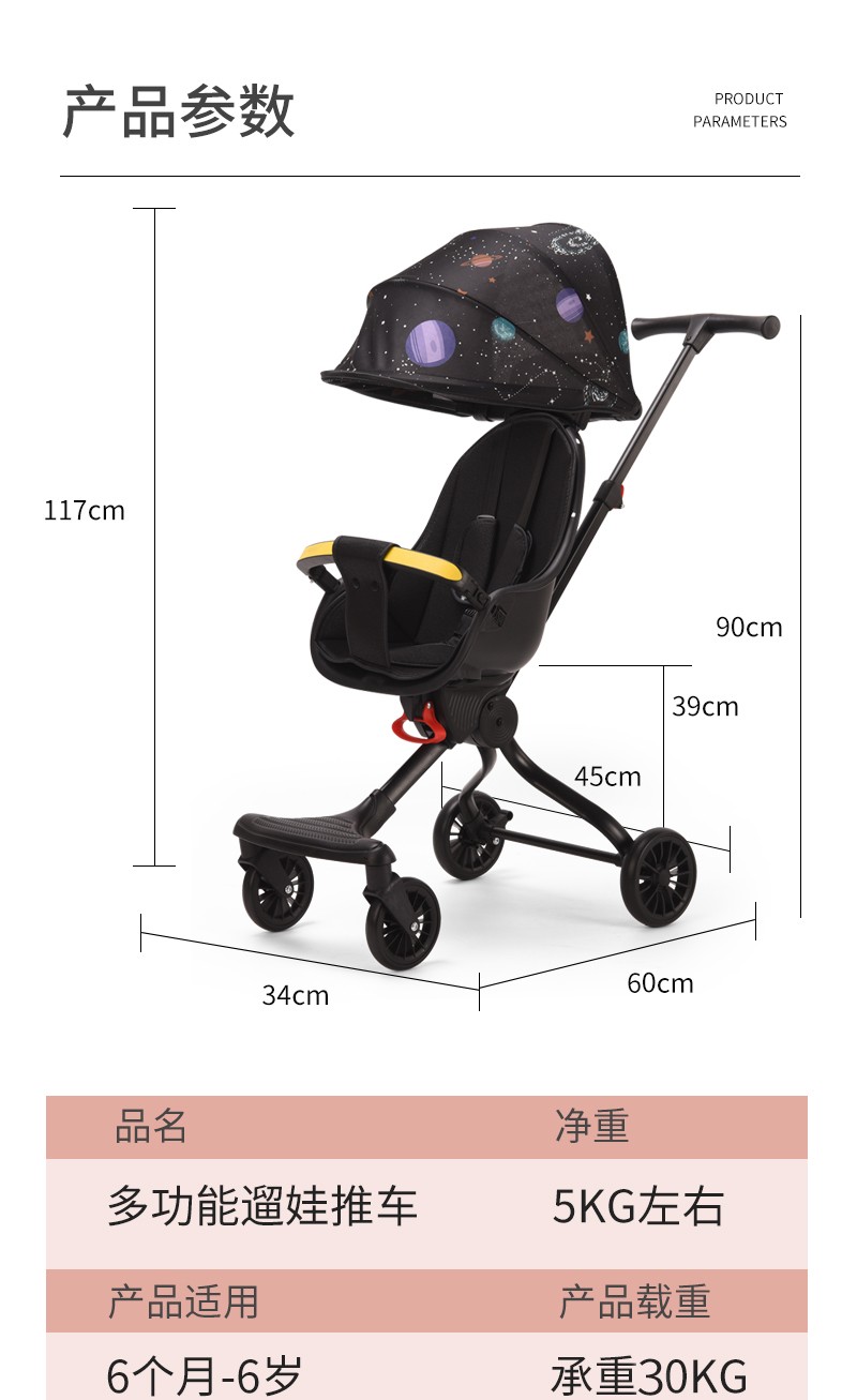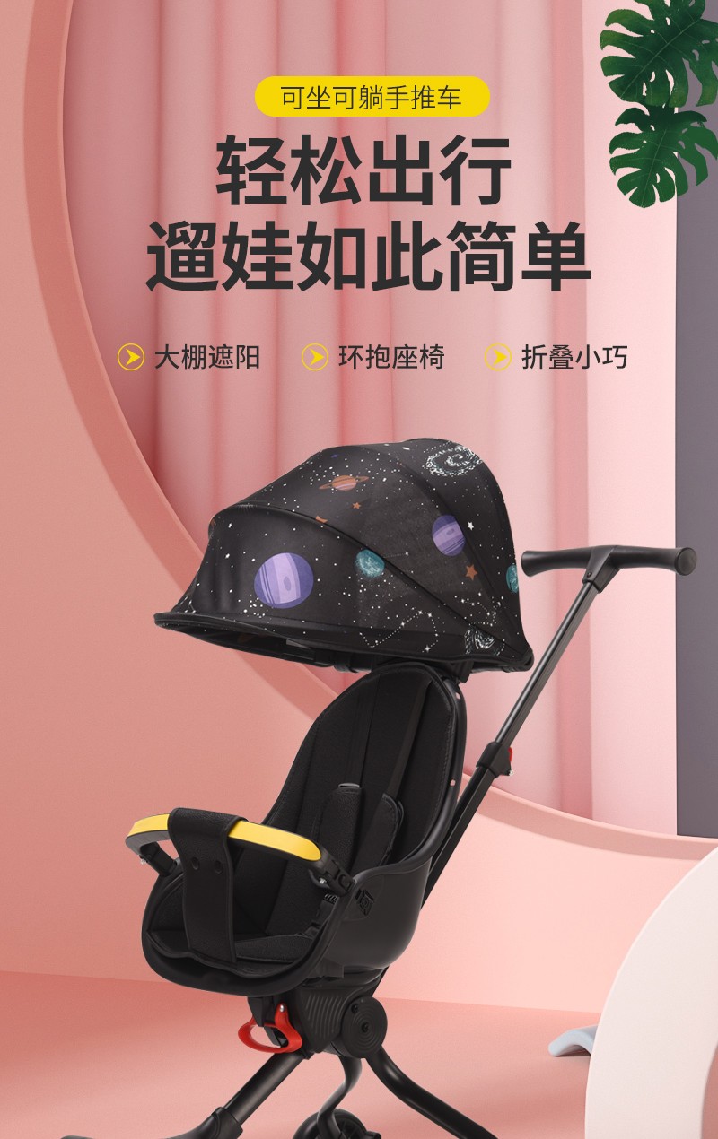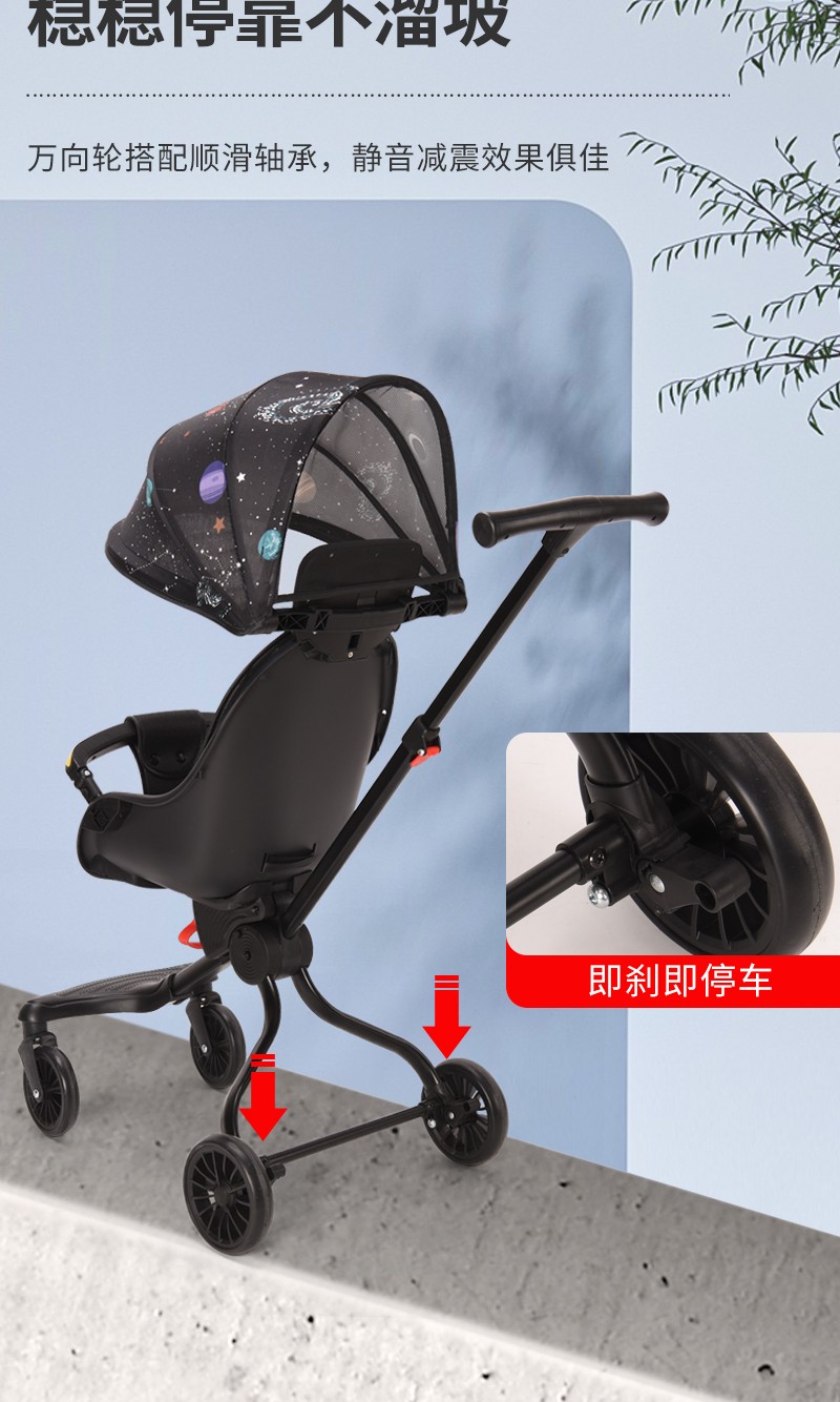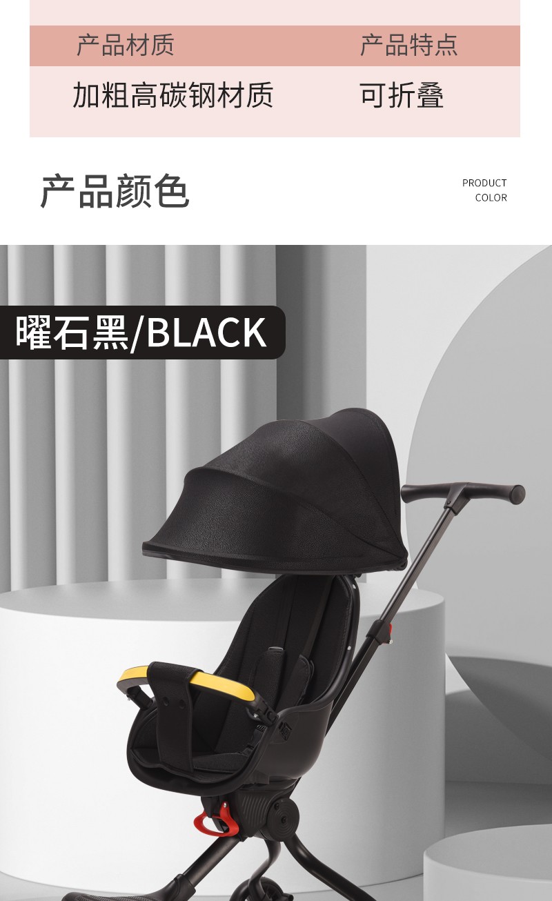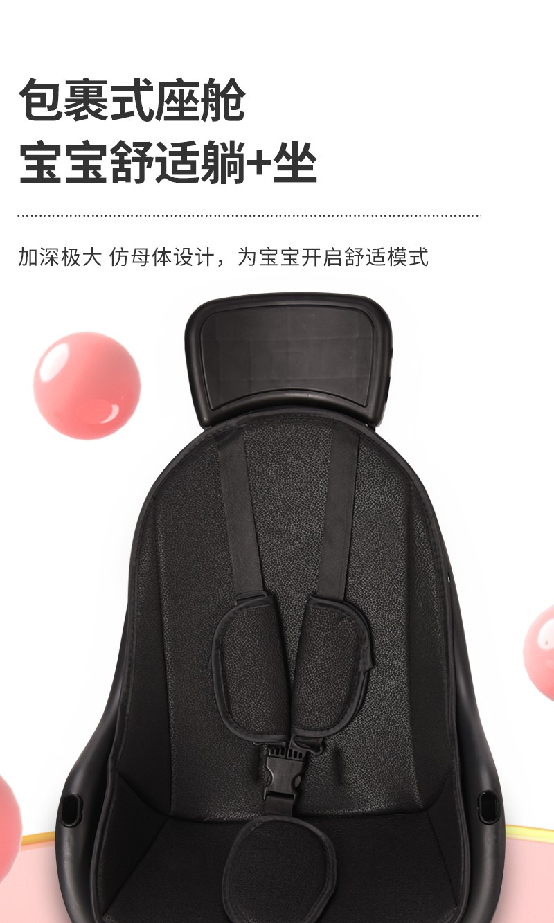 车身采用加粗高碳钢车架,稳固安全;加宽EVA发泡轮发泡实心轮胎 ,减震防滑,包裹式座舱可坐可135º躺宝宝更舒适,轻松变换方向方便实用,磨砂圆润把手,后轮刹车,安全升级