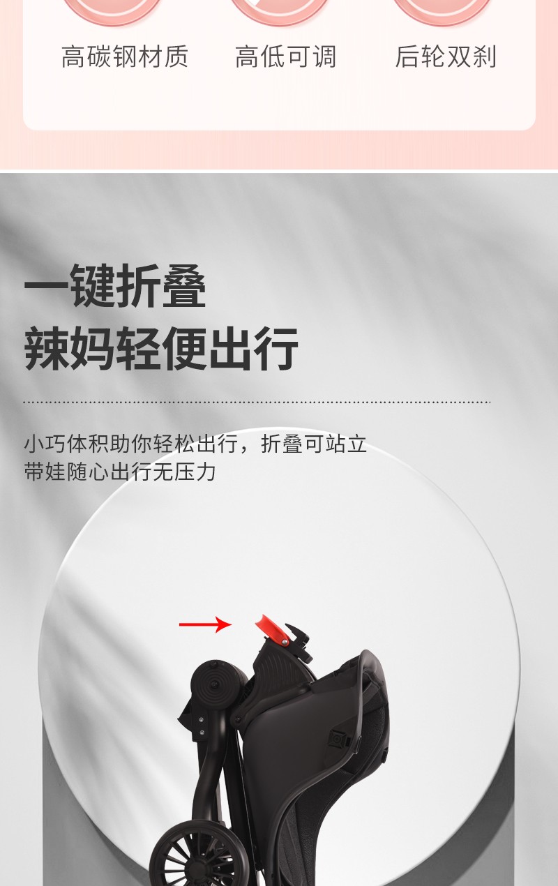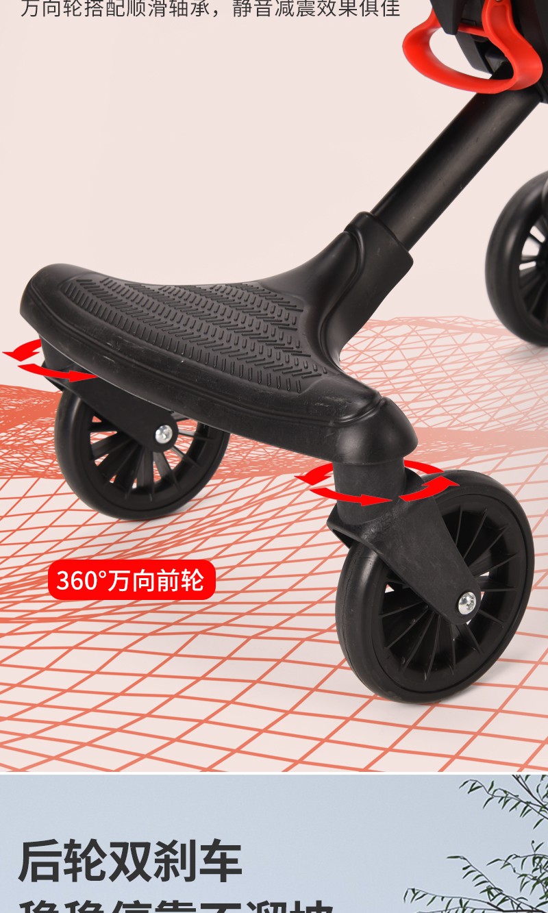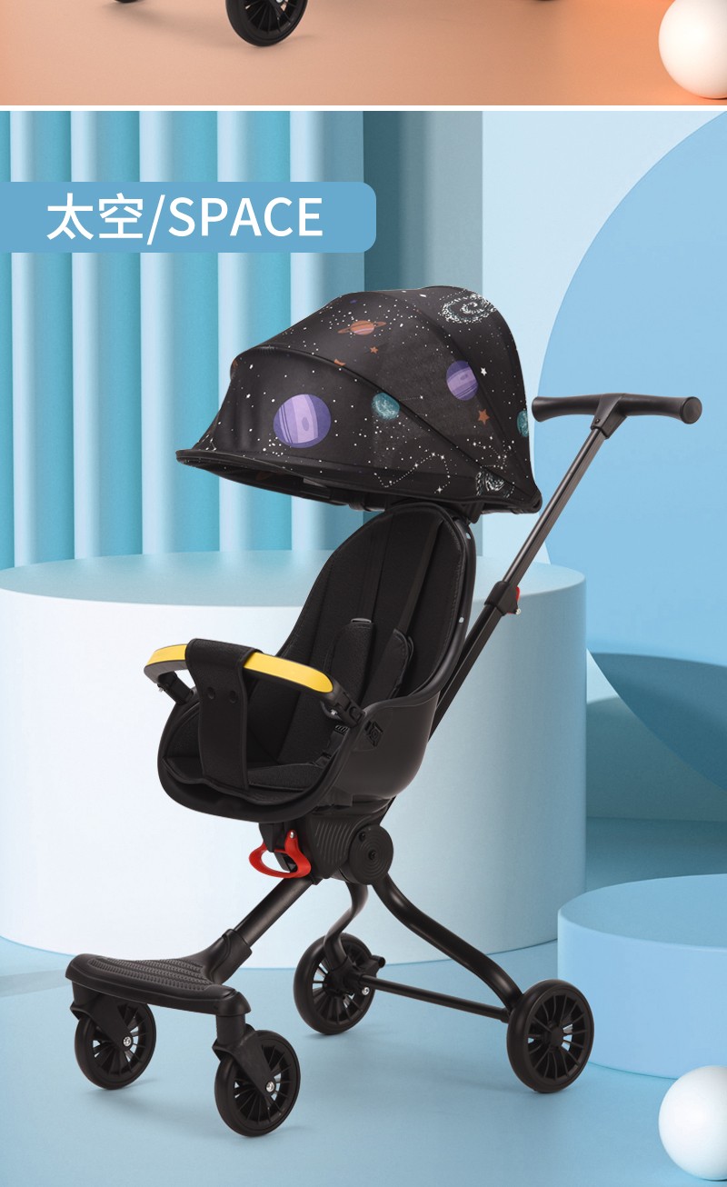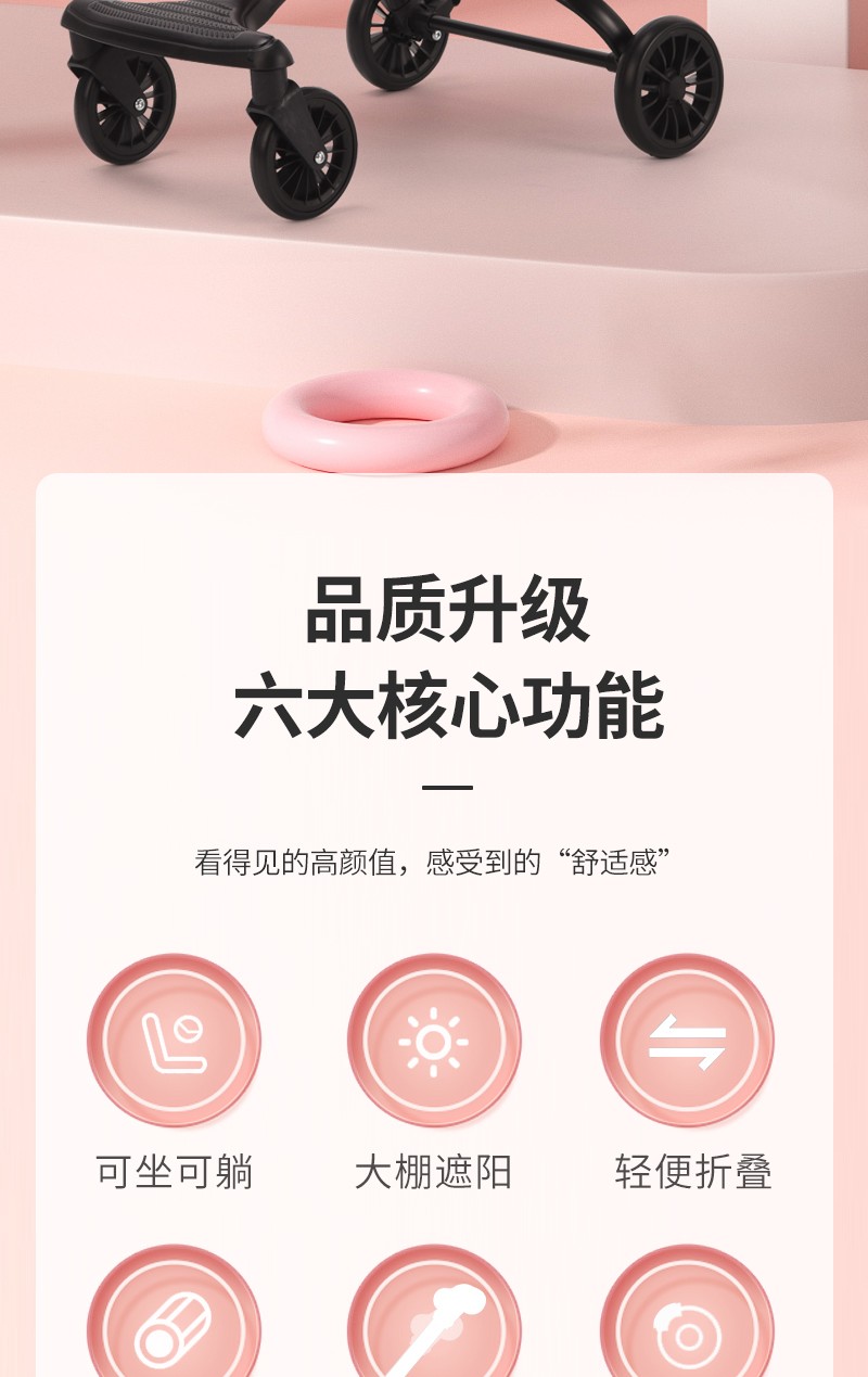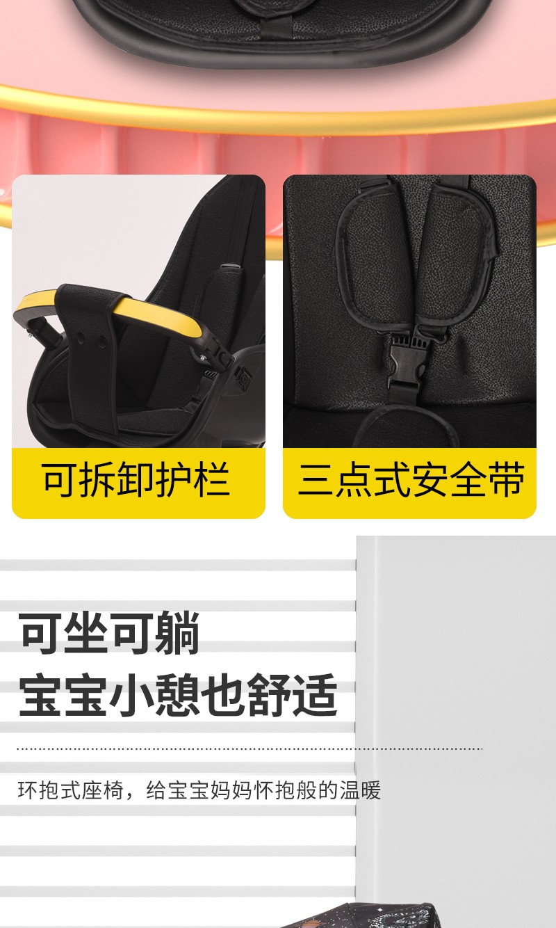 车身采用加粗高碳钢车架,稳固安全;加宽EVA发泡轮发泡实心轮胎 ,减震防滑,包裹式座舱可坐可135º躺宝宝更舒适,轻松变换方向方便实用,磨砂圆润把手,后轮刹车,安全升级