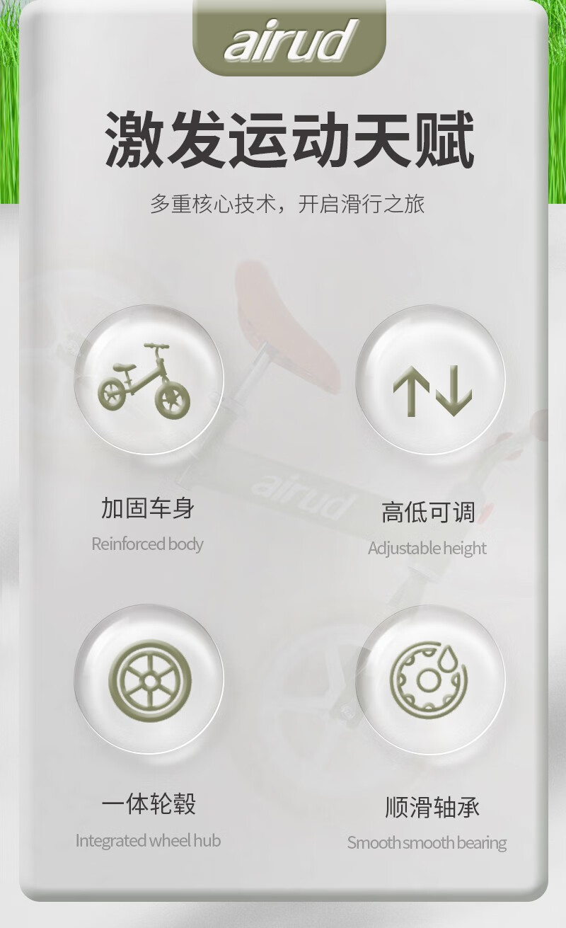 顺滑轴承,驱动更省力;轻便,稳固,防撞,减压,从小锻炼孩子平衡能力,协调能力,送给孩子童年最好的礼物。