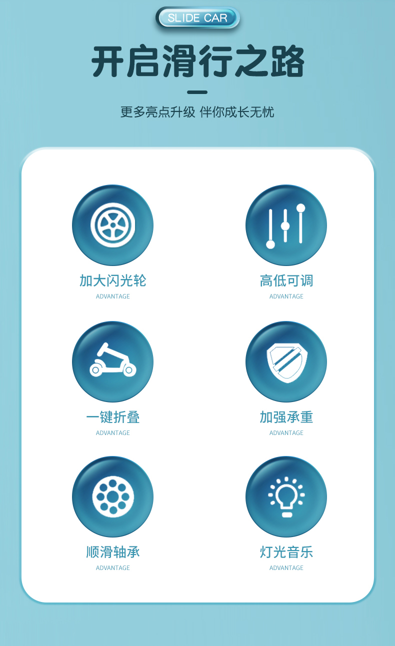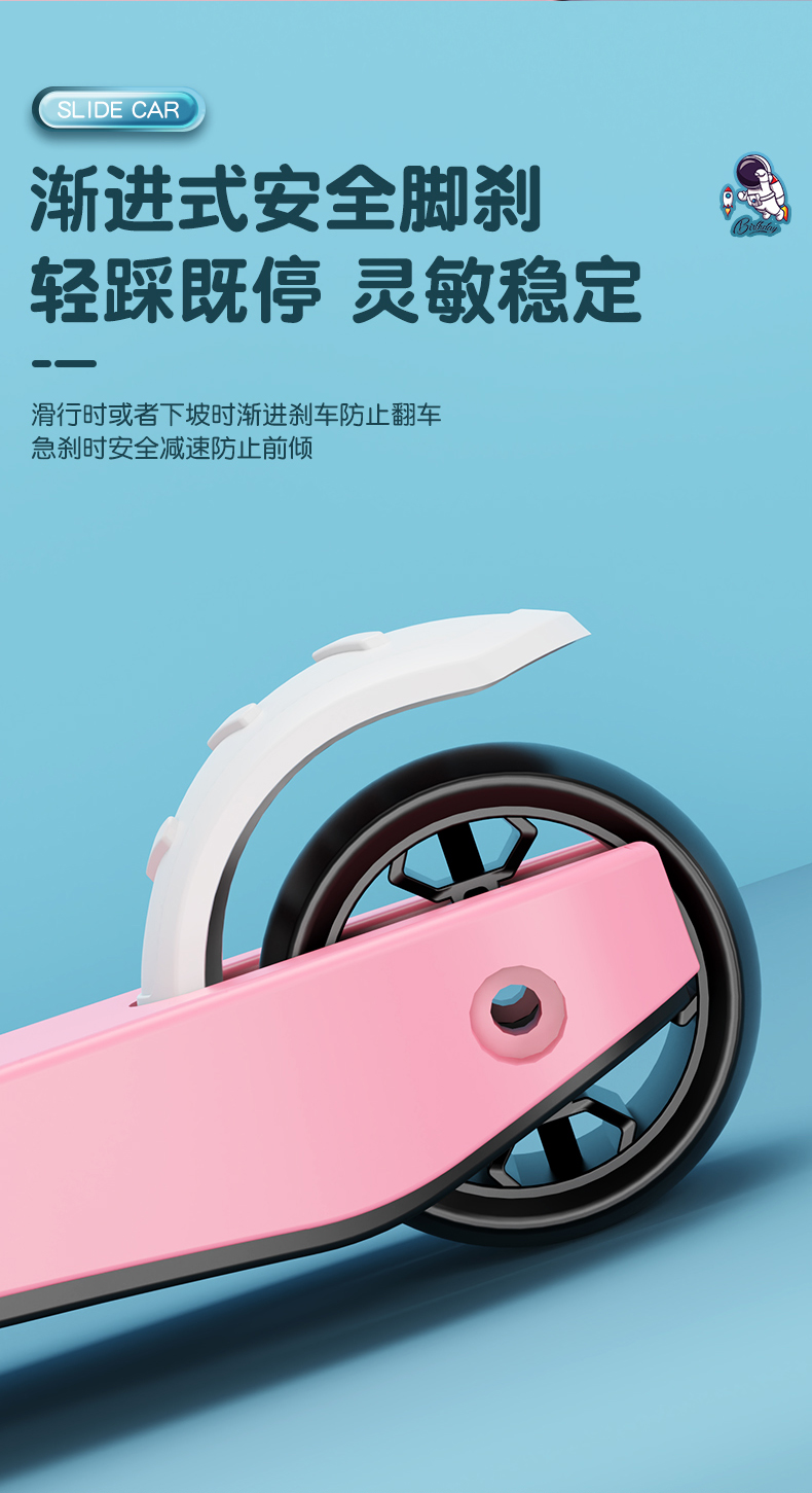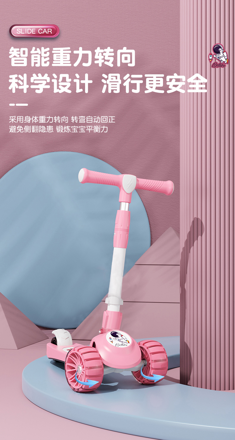 airud儿童滑板车安全性高;智能重力转向,灵活掌控方向,锻炼宝宝平衡力,平稳防滑耐磨:三档高低可调节伴宝宝成长;便捷使用;高弹耐磨灯光闪烁轮、锻炼平衡,高低可调节