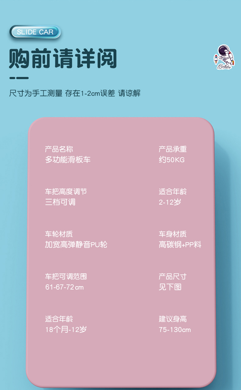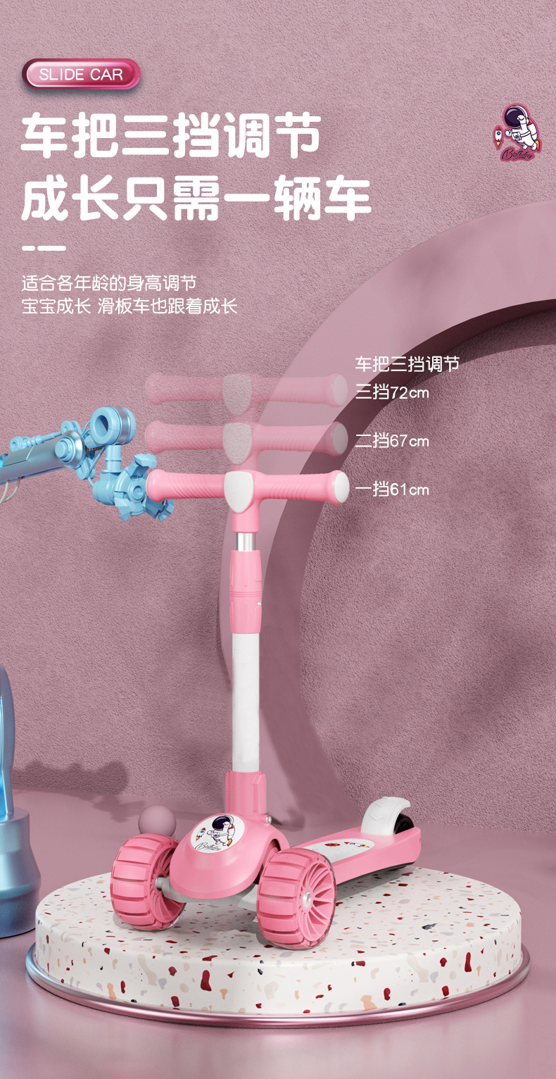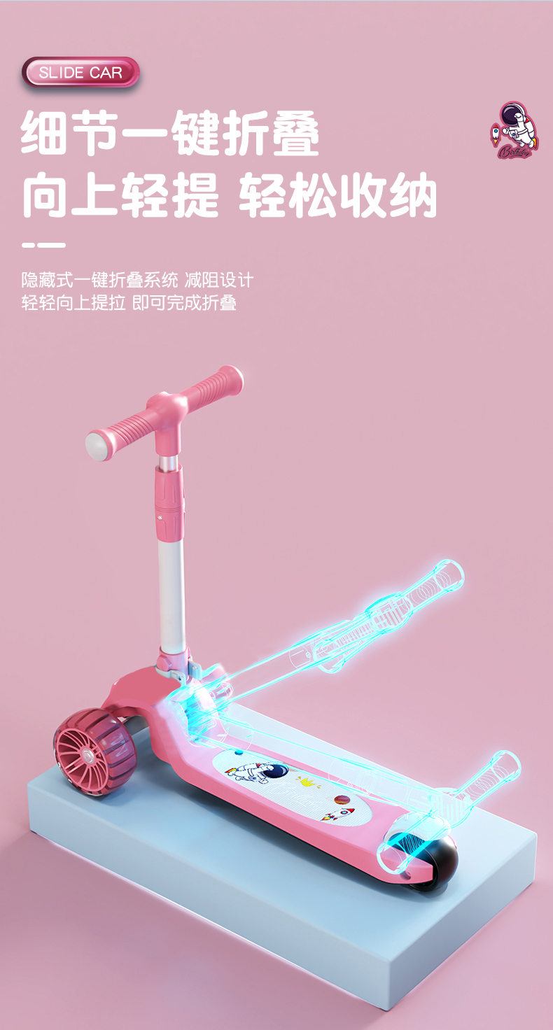 airud儿童滑板车安全性高;智能重力转向,灵活掌控方向,锻炼宝宝平衡力,平稳防滑耐磨:三档高低可调节伴宝宝成长;便捷使用;高弹耐磨灯光闪烁轮、锻炼平衡,高低可调节