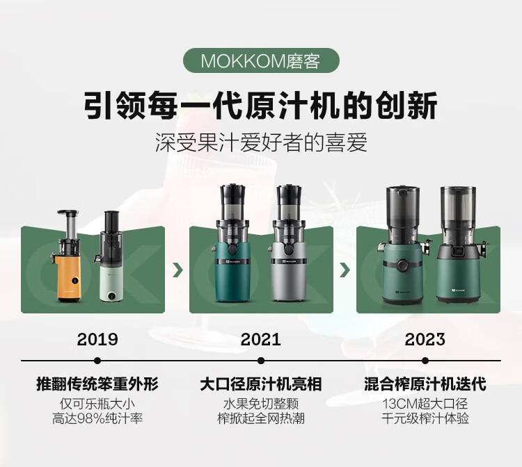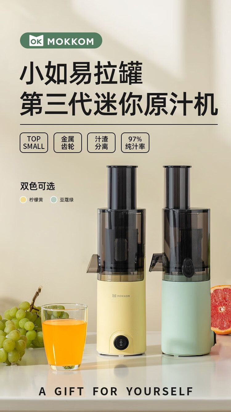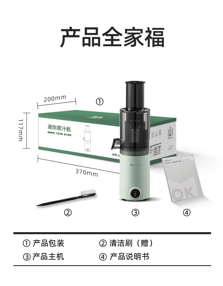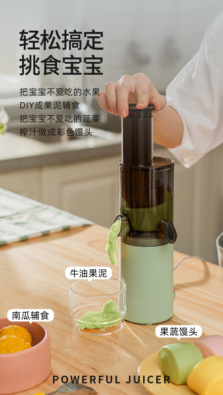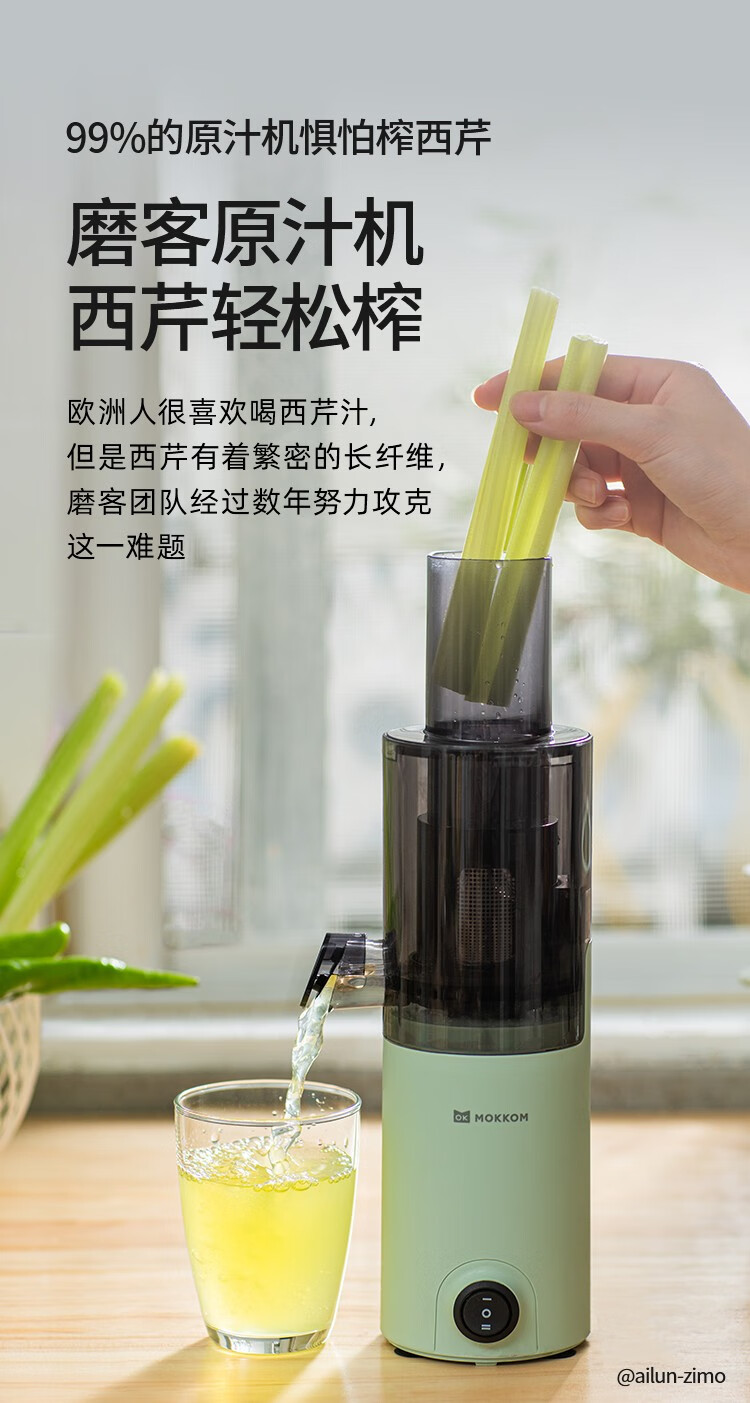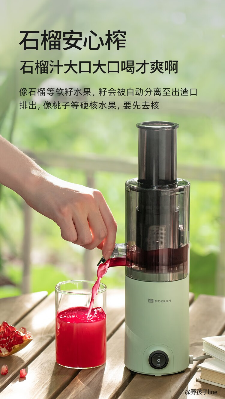 外观小巧,颜值超高,小机身有大能量,不占地,收纳及拆装非常简单,解决传统大型原汁机占位置及太重的问题