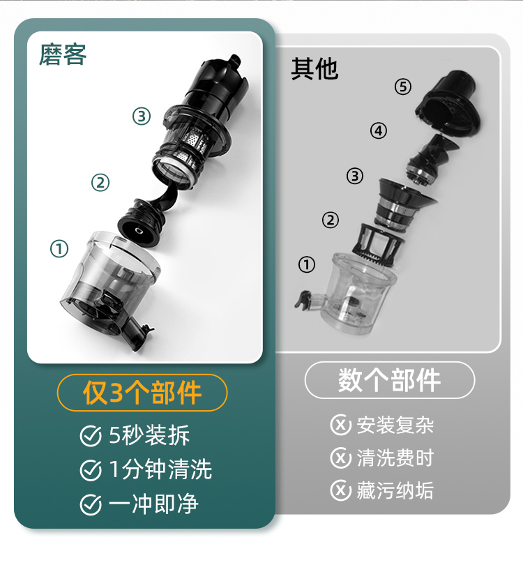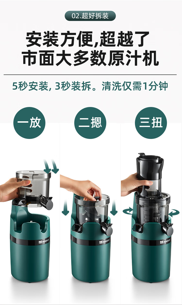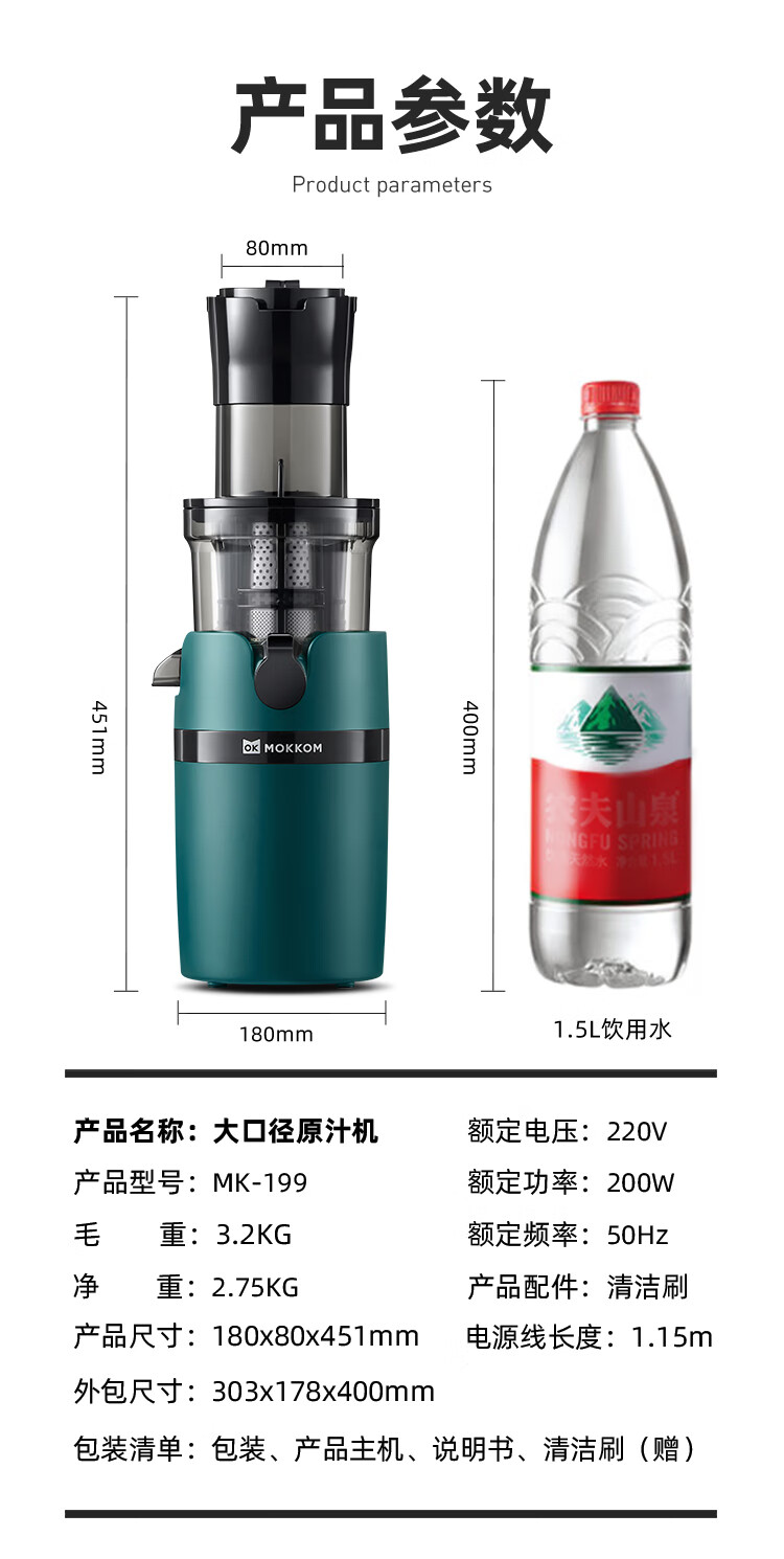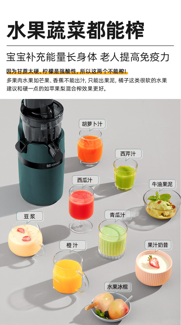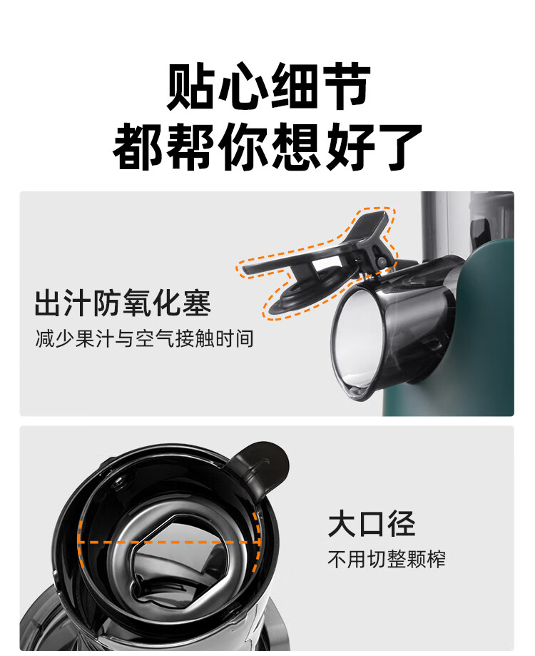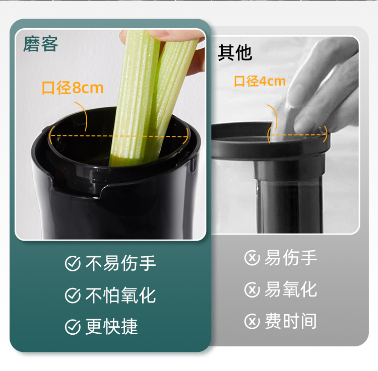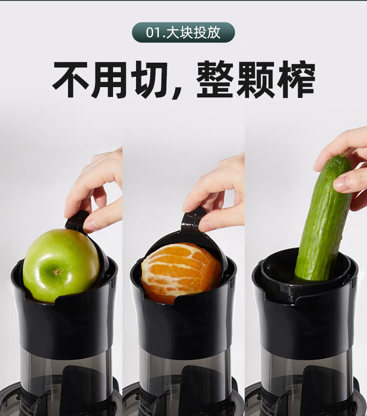 9cm直径大口径,不用切,整颗榨,大块投放真方便,不切小块防氧化又安全