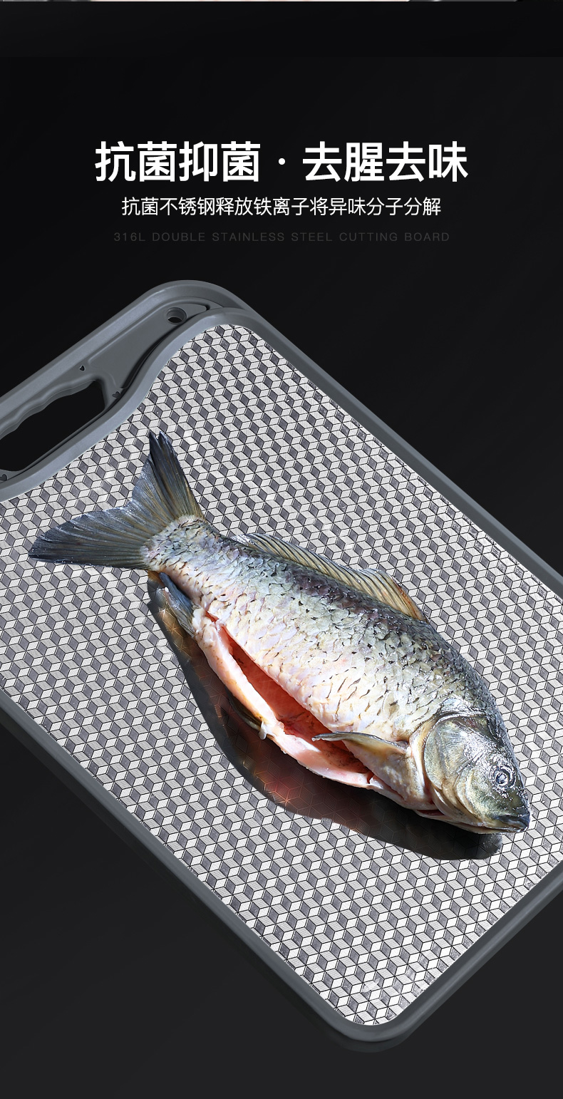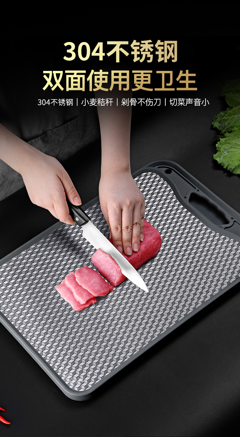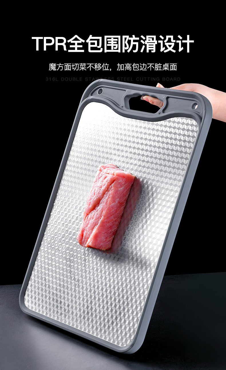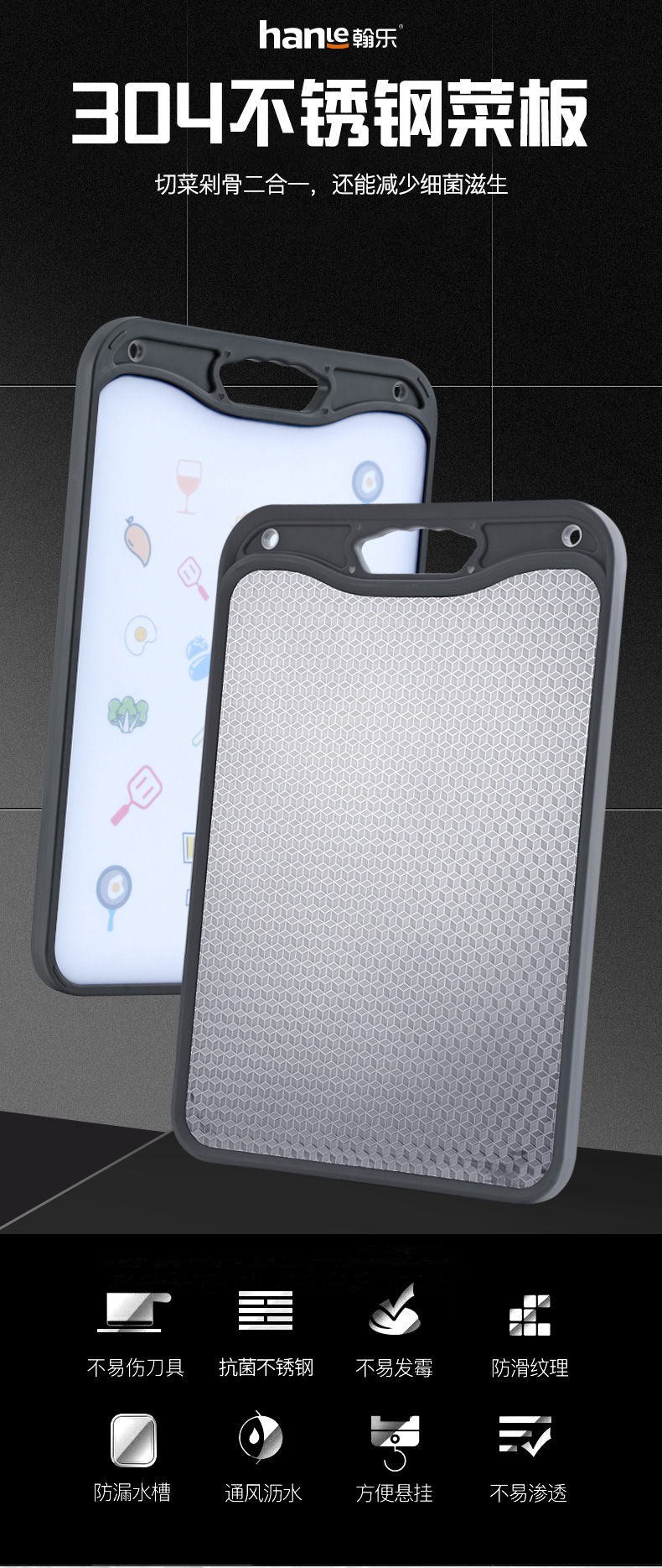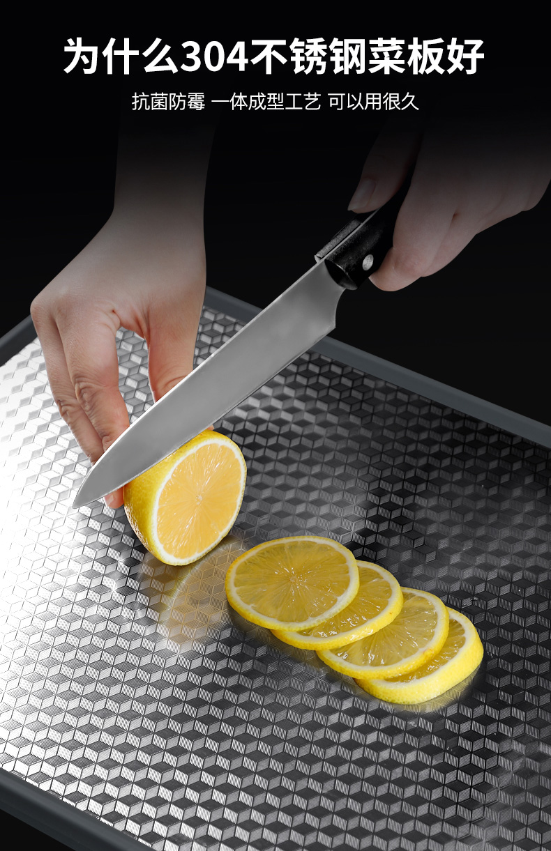 翰乐304不锈钢切菜 板抗菌防霉家用 案板厨房厚刀板 双面水果砧板