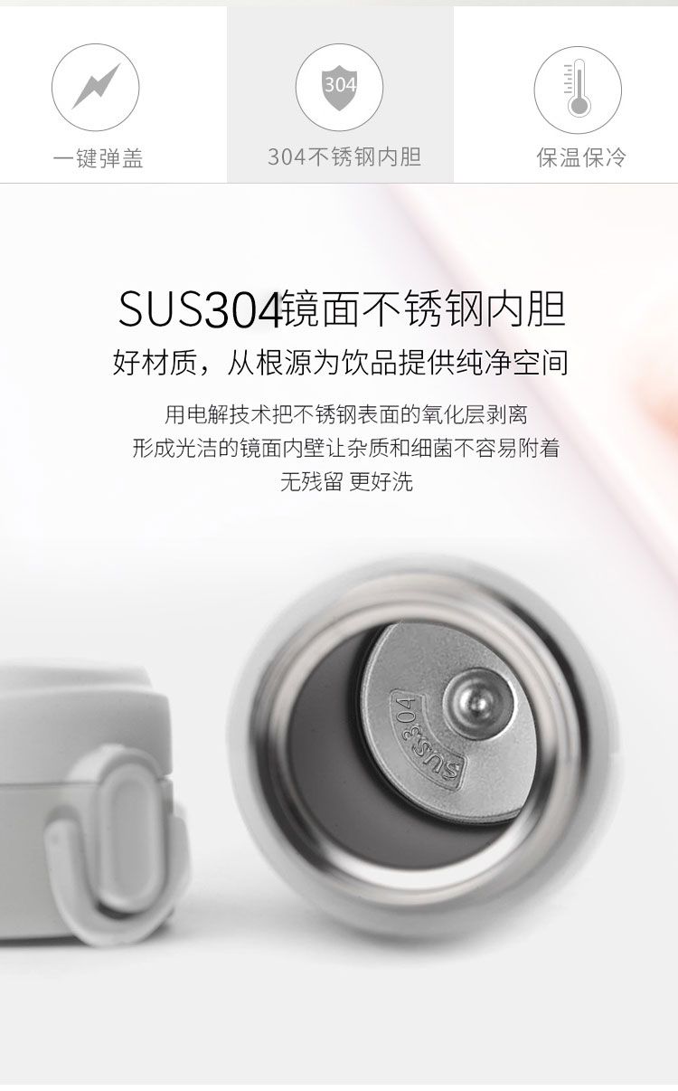一键弹盖,304不锈钢内胆,耐用防漏水,长效保温,经典高颜值
