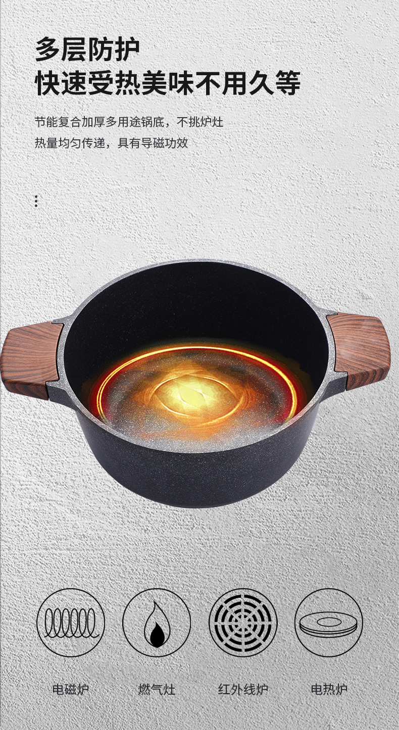 复合底快速导热省气省电,有质感、健康材质,不粘锅,好用易清洗