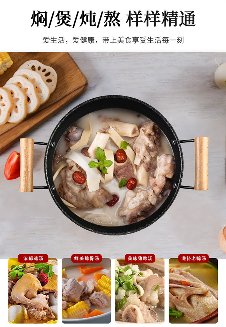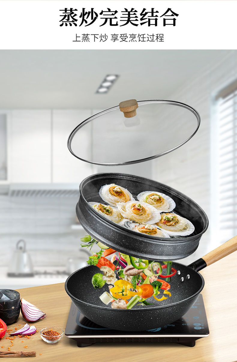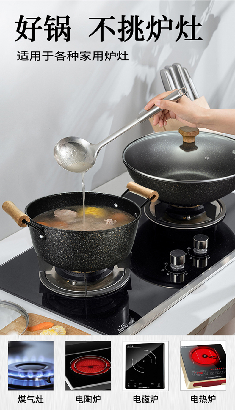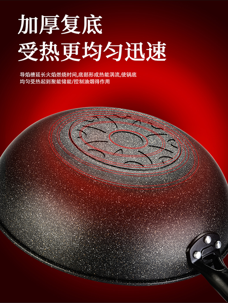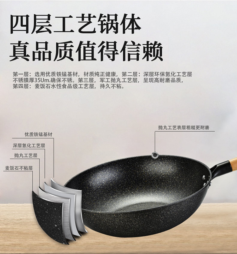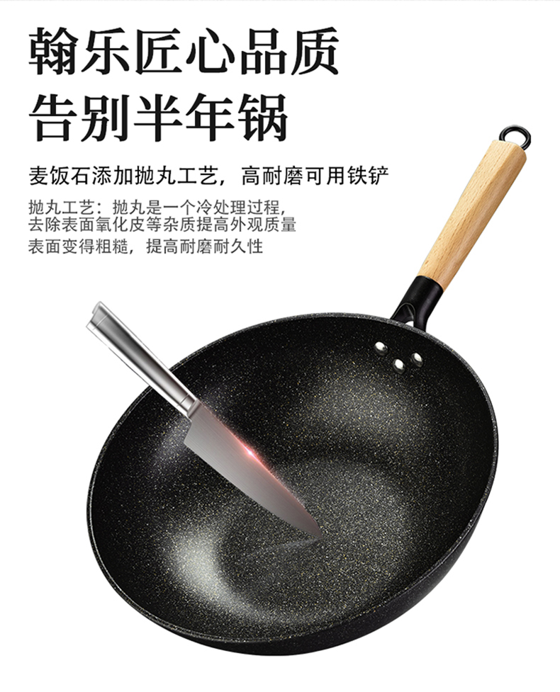硬氧不粘,轻油少烟,可用铁铲,耐磨耐用加复合底可用电磁炉明火