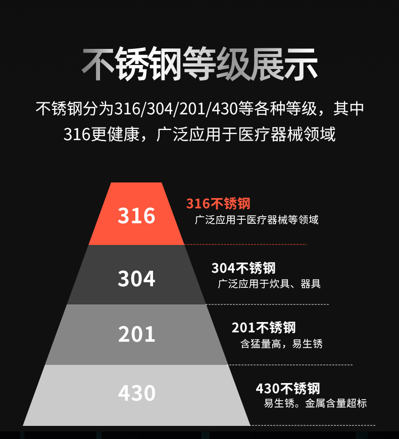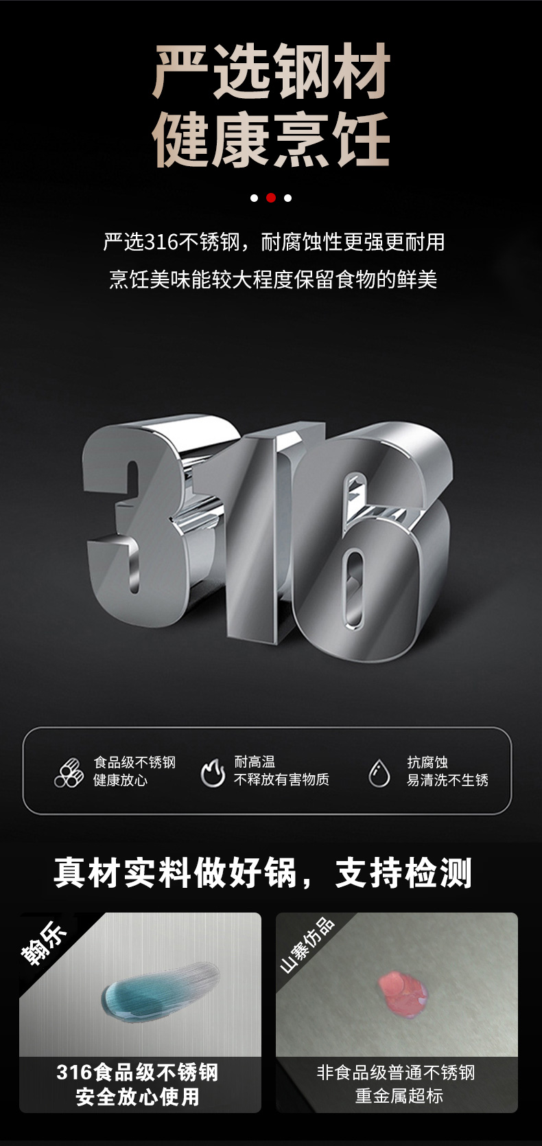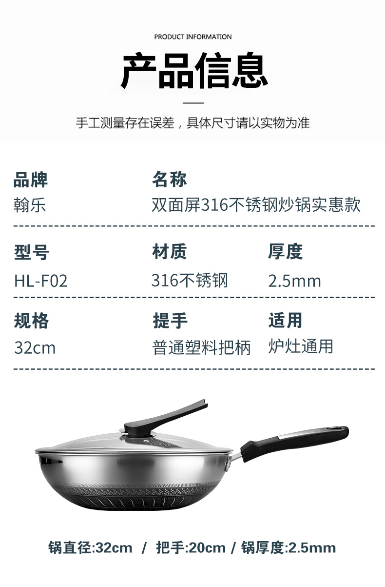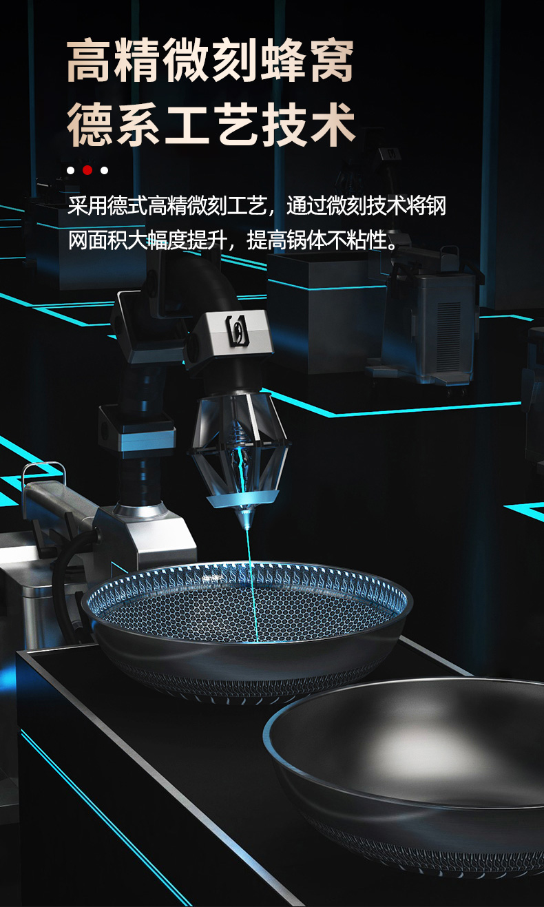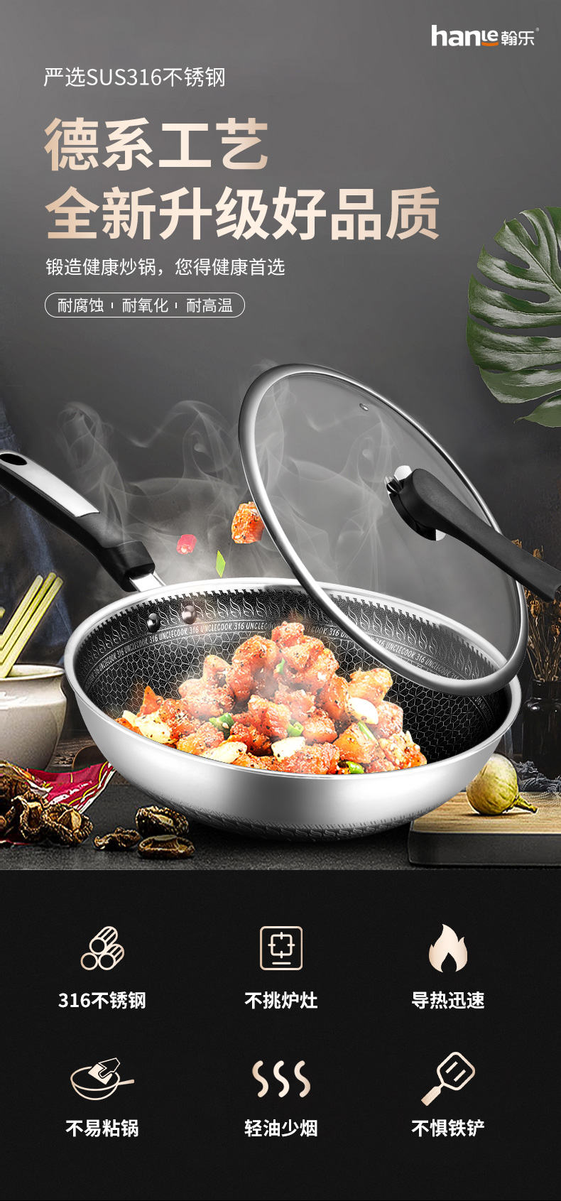 316不锈钢,蜂窝设计物理不粘,无涂层可用钢铲,不糊底更耐刮,煤气电磁炉通用