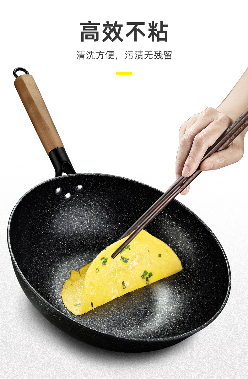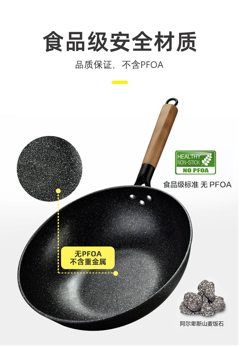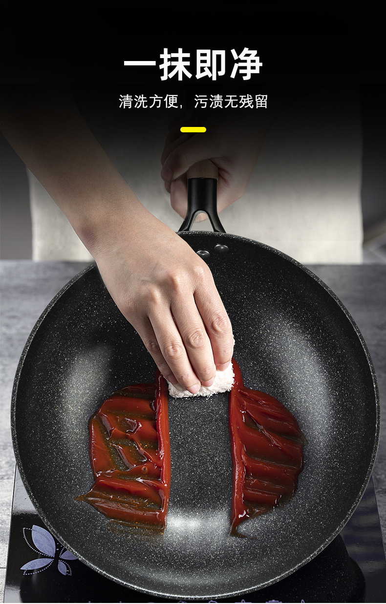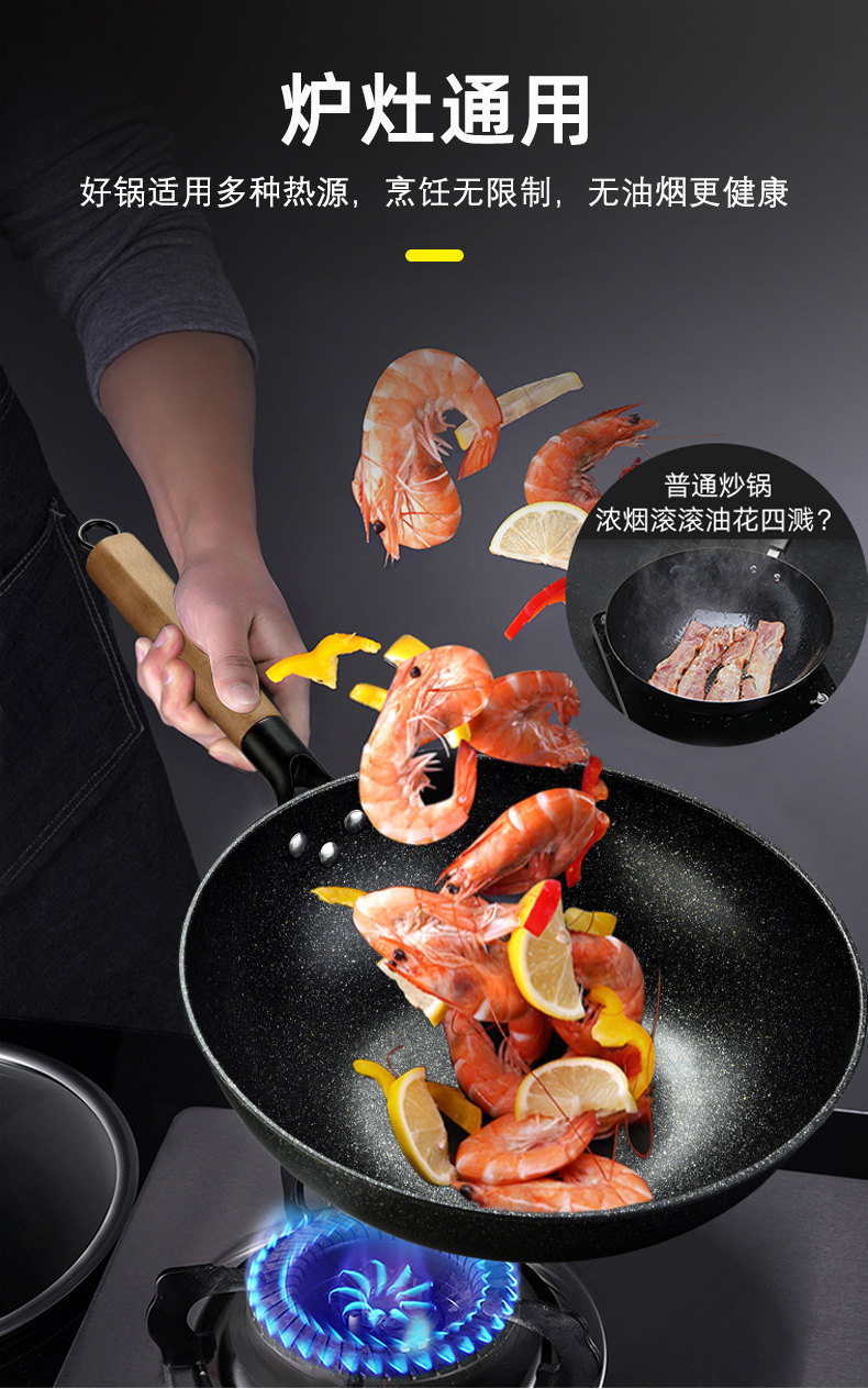 硬氧不粘,可用铁铲,耐磨耐用加复合底可用电磁炉明火款式简洁好用易清洗