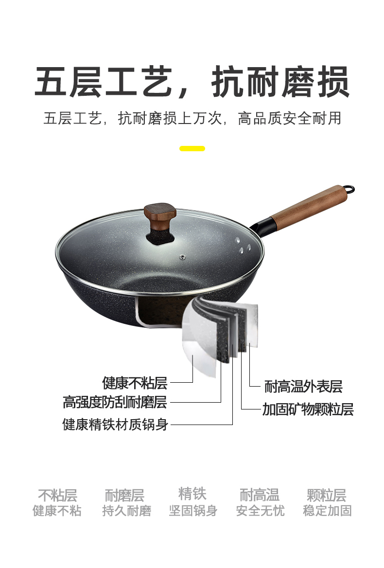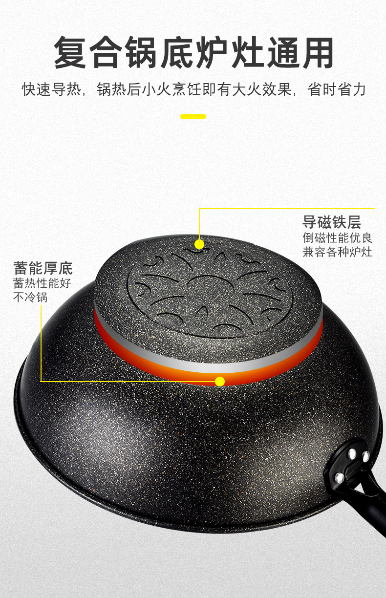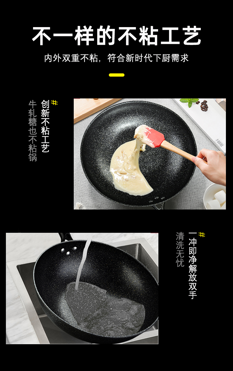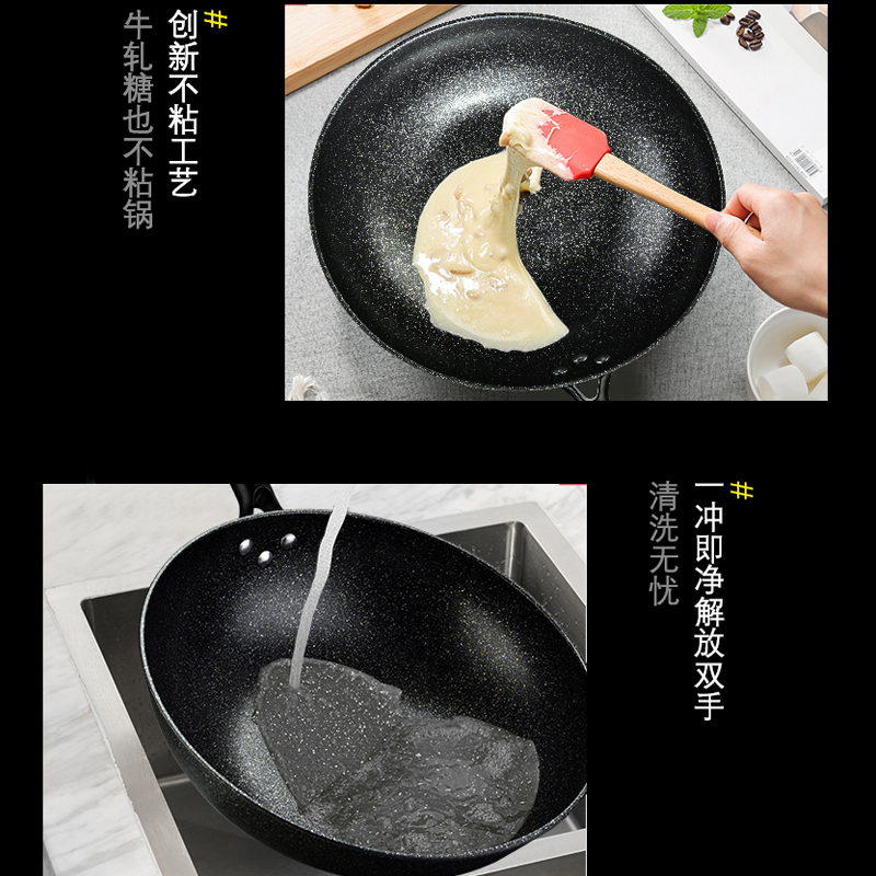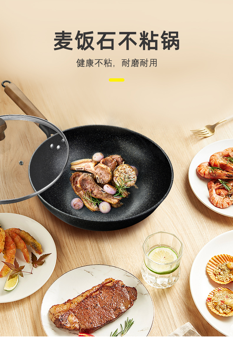 硬氧不粘,可用铁铲,耐磨耐用加复合底可用电磁炉明火款式简洁好用易清洗
