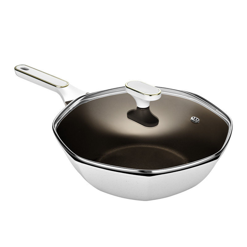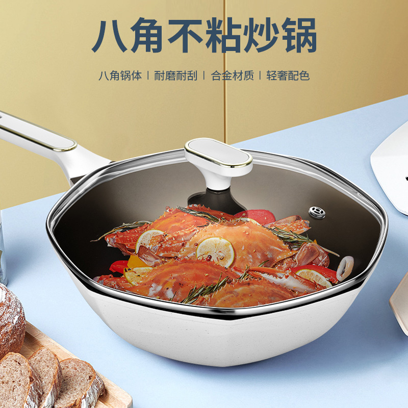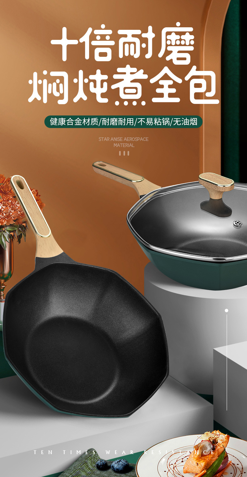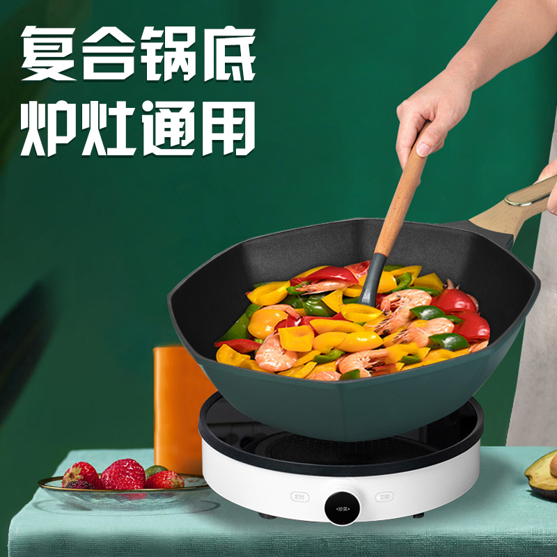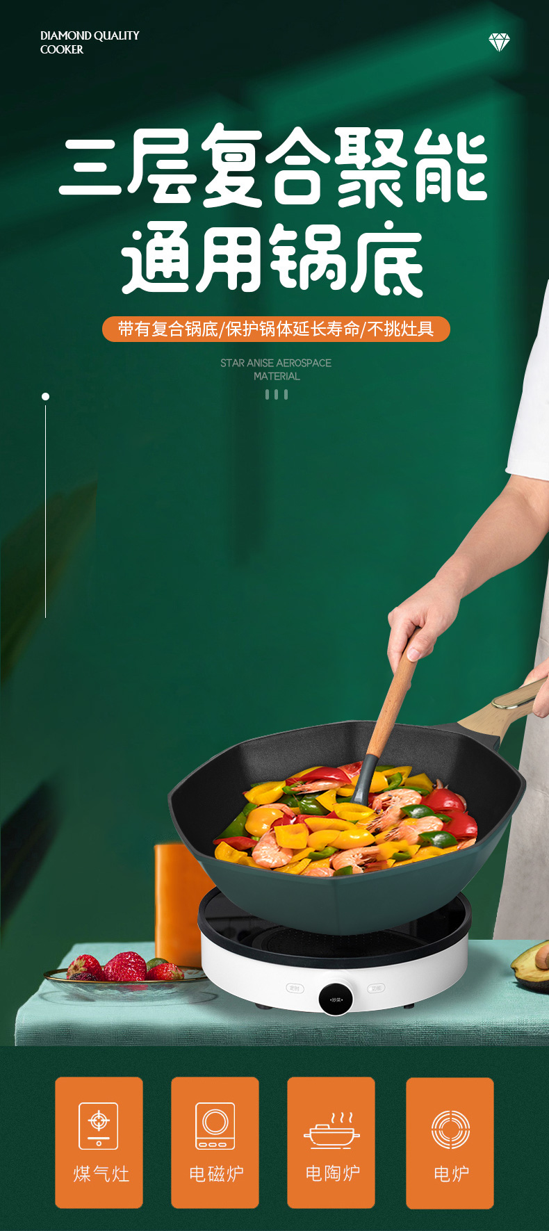 健康材质不粘锅,好用易清洗,复合底导热均匀迅速,轻油少烟,不挑炉灶、有质感高颜值