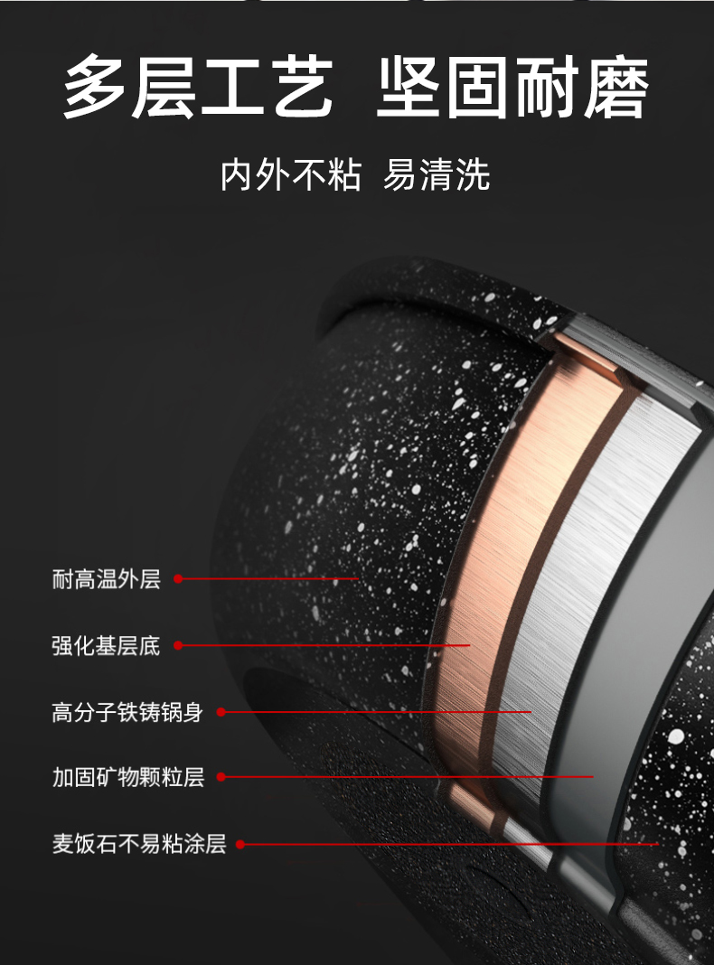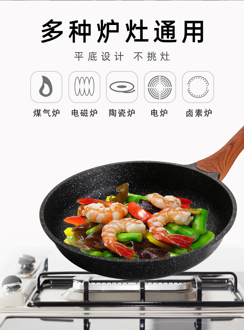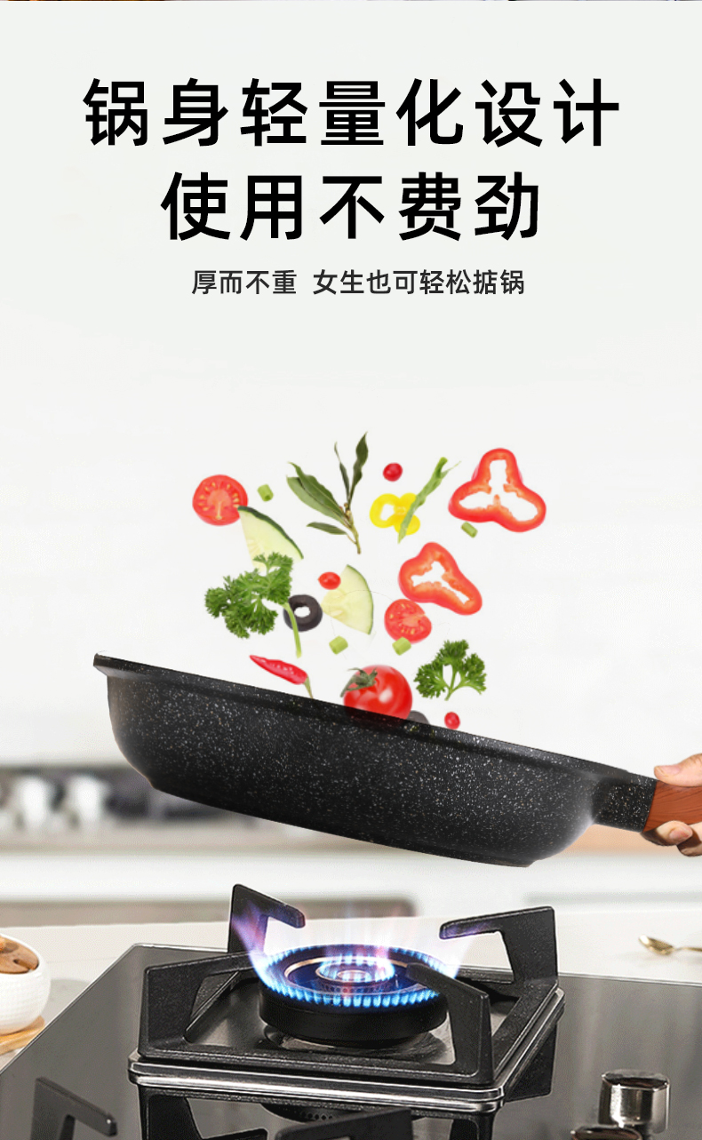 复合底快速导热省气省电,有质感、健康材质,不粘煎锅,好用易清洗
