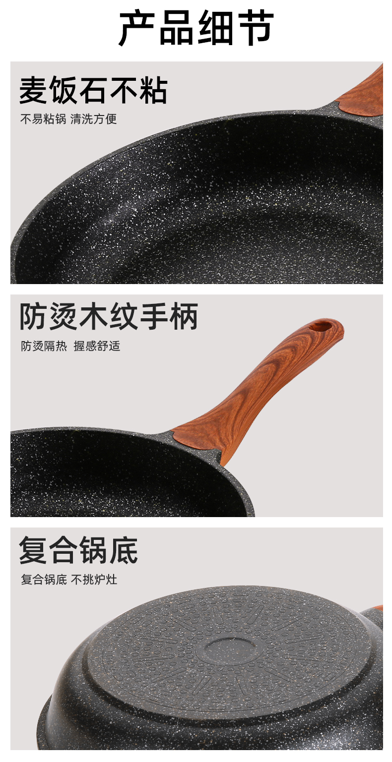 复合底快速导热省气省电,有质感、健康材质,不粘煎锅,好用易清洗