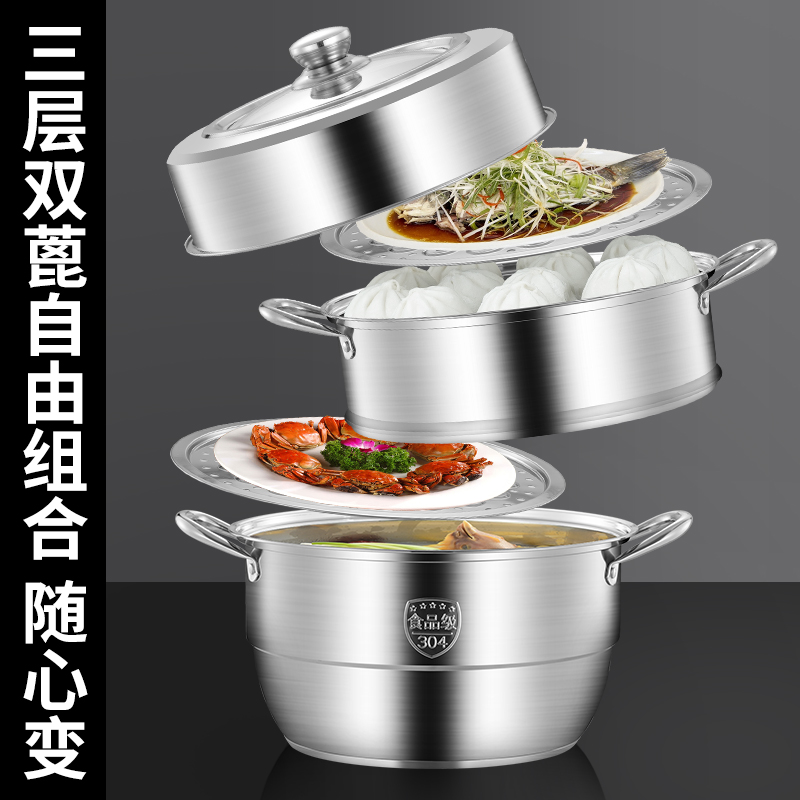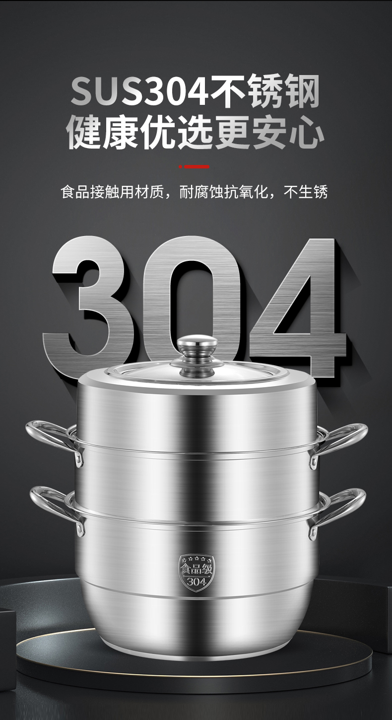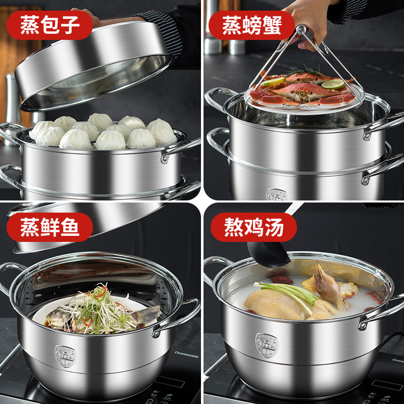 食品级不锈钢材质,耐用不生锈,一锅多功能蒸煮涮火锅,秒变厨神