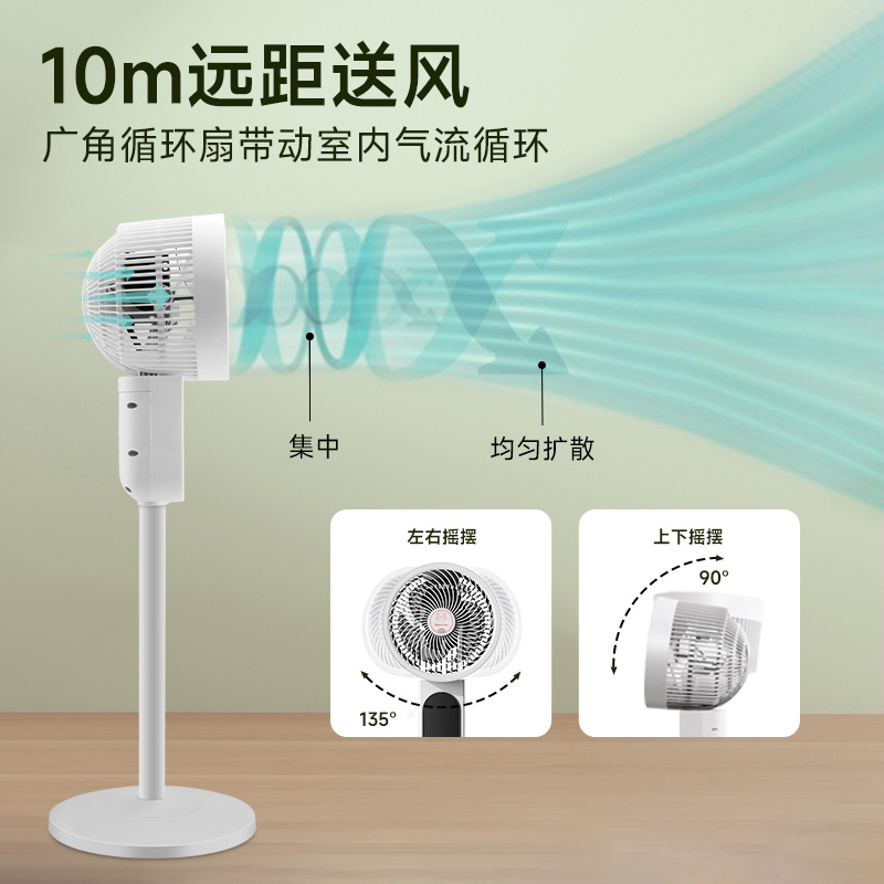 循环大风量,静享自然柔风,远距离送风,优化降噪技术,微风轻伴助睡眠,采用铜包铝电机,节能低耗损,强劲动力输出,低噪运行,左右摇摆,操作便捷,内置香薰盒,可添加香薰精油或者驱蚊液,两种高度,台地两用,卸下支撑杆,落地扇高度减少22.7cm左右,更适合坐着,躺着,小孩纳凉,旋钮控制方式,左右摇头,可加香薰,智能数显