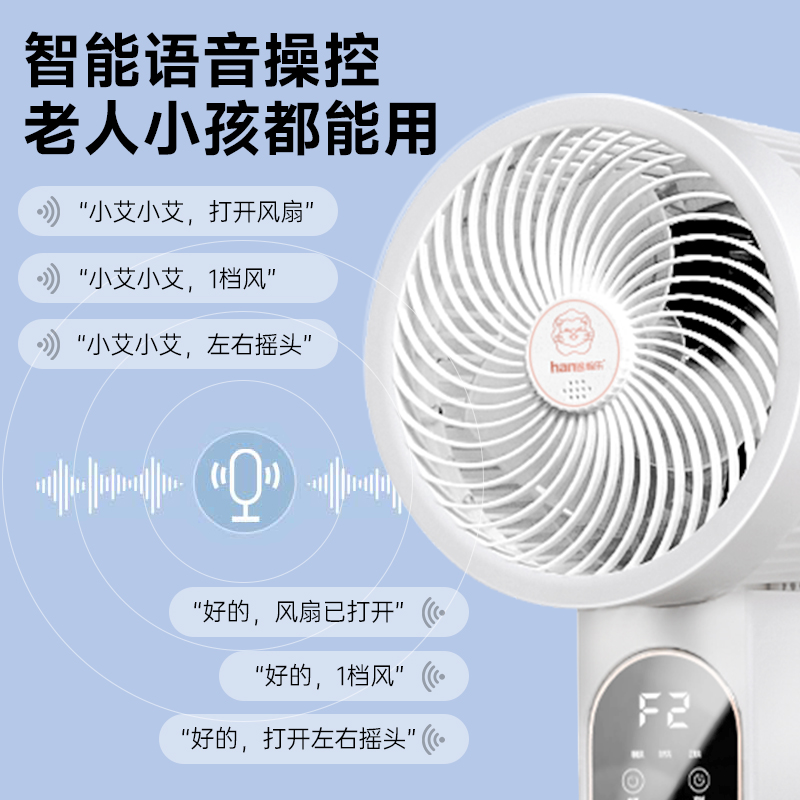 循环大风量,静享自然柔风,远距离遥控,智能语音控制,老人小孩都能用,超大广角摇头,远距离送风,优化降噪技术,微风轻伴助睡眠,采用铜包铝电机,节能低耗损,强劲动力输出,低噪运行,左右摇摆可135°左右,上下摇摆90°左右,远程遥控调节不起身,操作便捷,内置香薰盒,可添加香薰精油或者驱蚊液,两种高度,台地两用,卸下支撑杆,落地扇高度减少22.7cm左右,更适合坐着,躺着,小孩纳凉,语音款控制方式:语音+触屏+遥控,上下左右摇头,可加香薰,智能数显