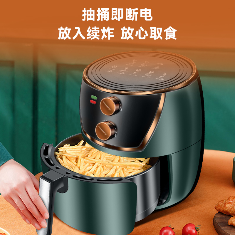 内锅采用陶瓷处理,采用360度热空气循环,上下双风扇,360度热能包裹,多功能低脂高温速炸,无油无烟,大容量,保留油炸口感