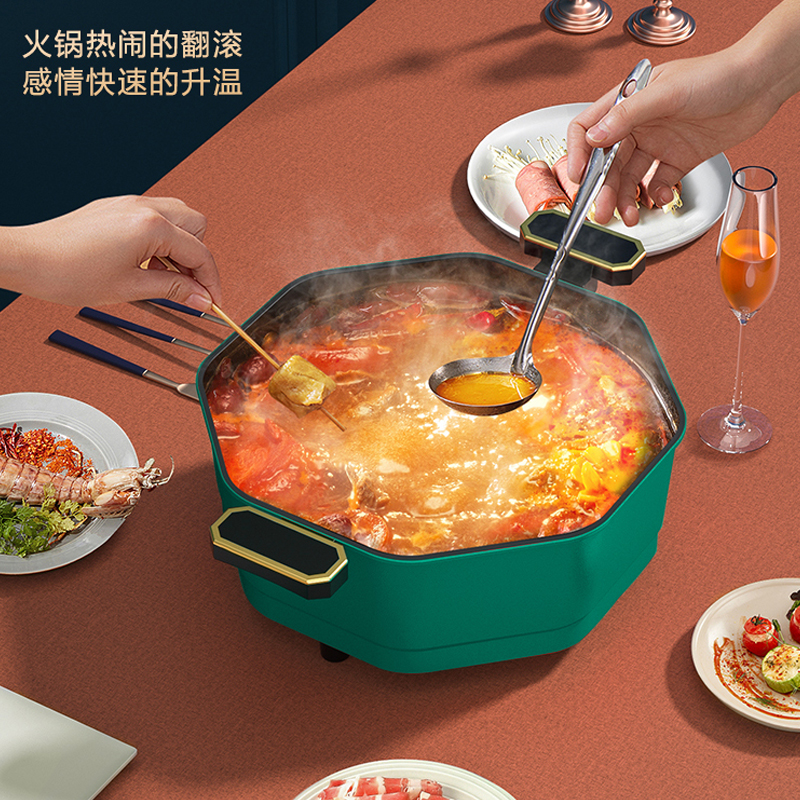 大容量,多功能新型八角不粘电火锅,1500W聚能发热管,节能省电好用易清洗