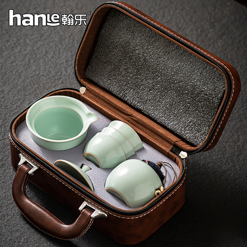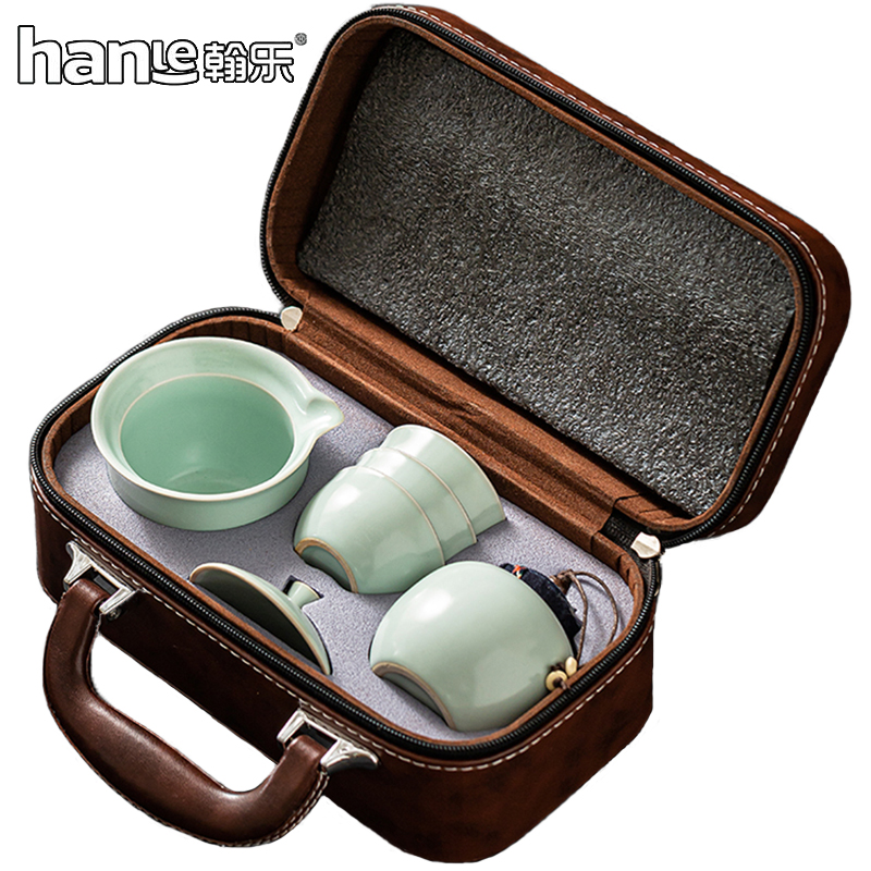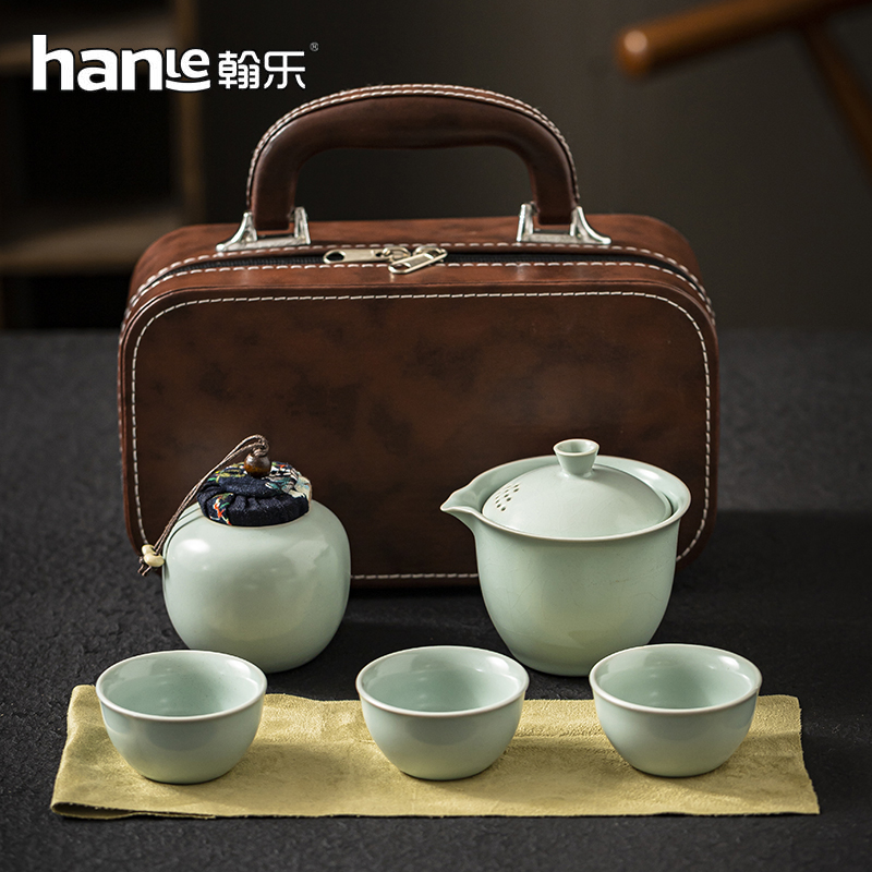 翰乐茶具陶瓷一壶三杯简约套装HL-KKHW快客户外1壶3杯
