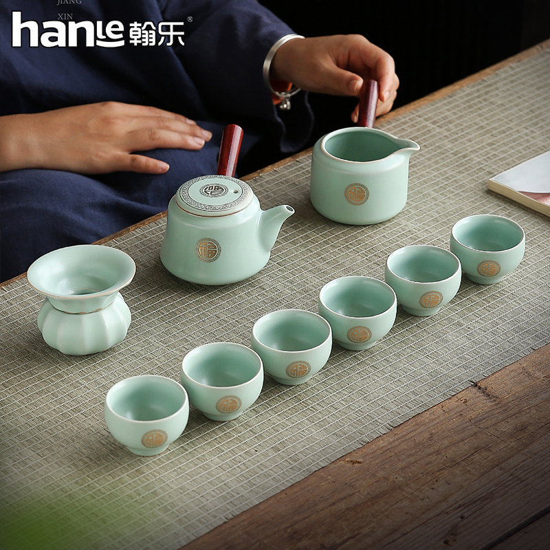 翰乐茶具半自动时来运转泡茶神器描金高端轻奢HL-SMSH石墨生花9件套