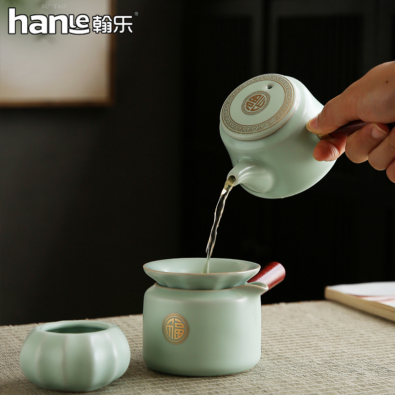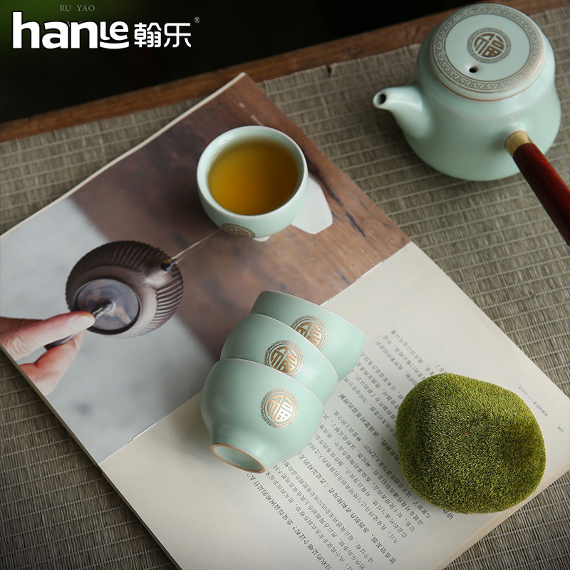翰乐茶具陶瓷一壶三杯简约套装HL-KKHW快客户外1壶3杯