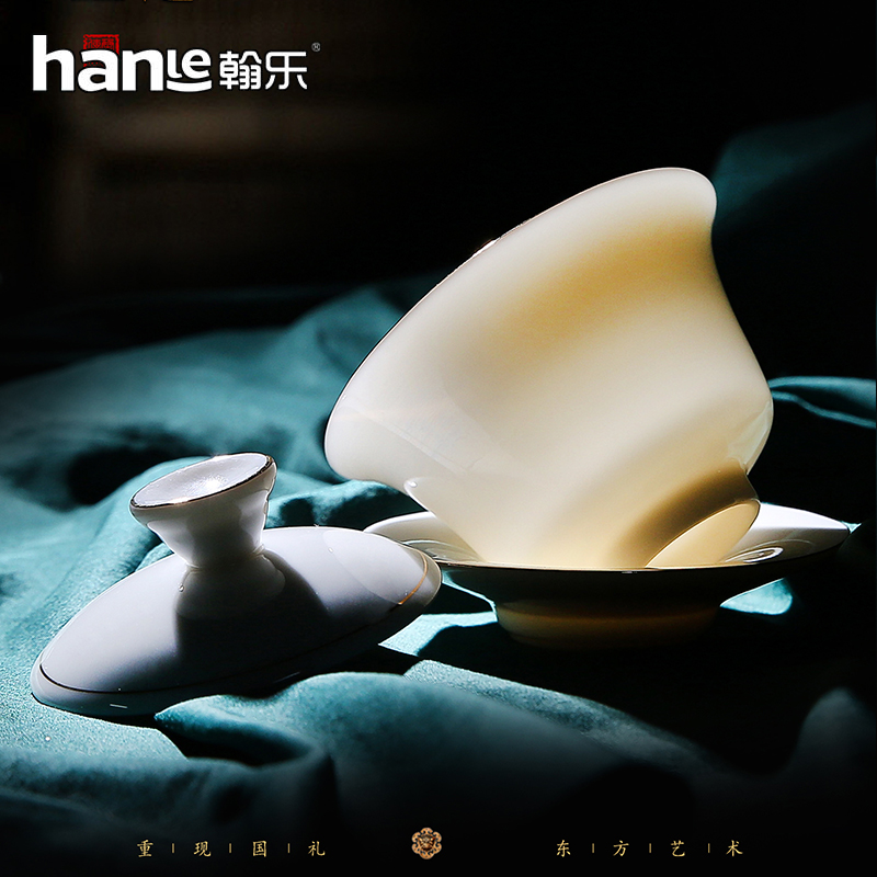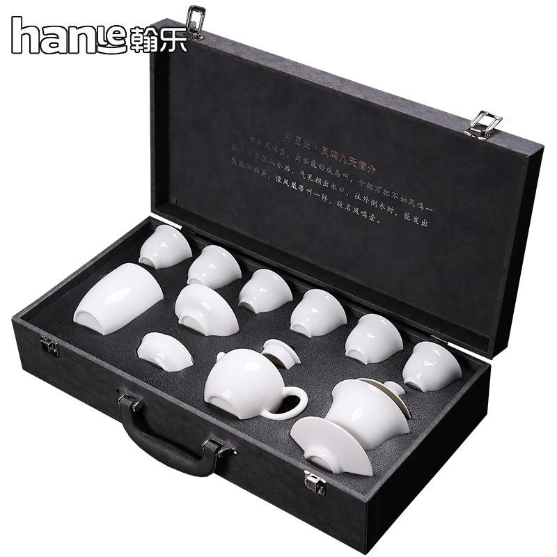 翰乐茶具羊脂玉瓷素烧茶具高端礼盒套装HL-FMJT羊脂玉凤鸣九天11件套